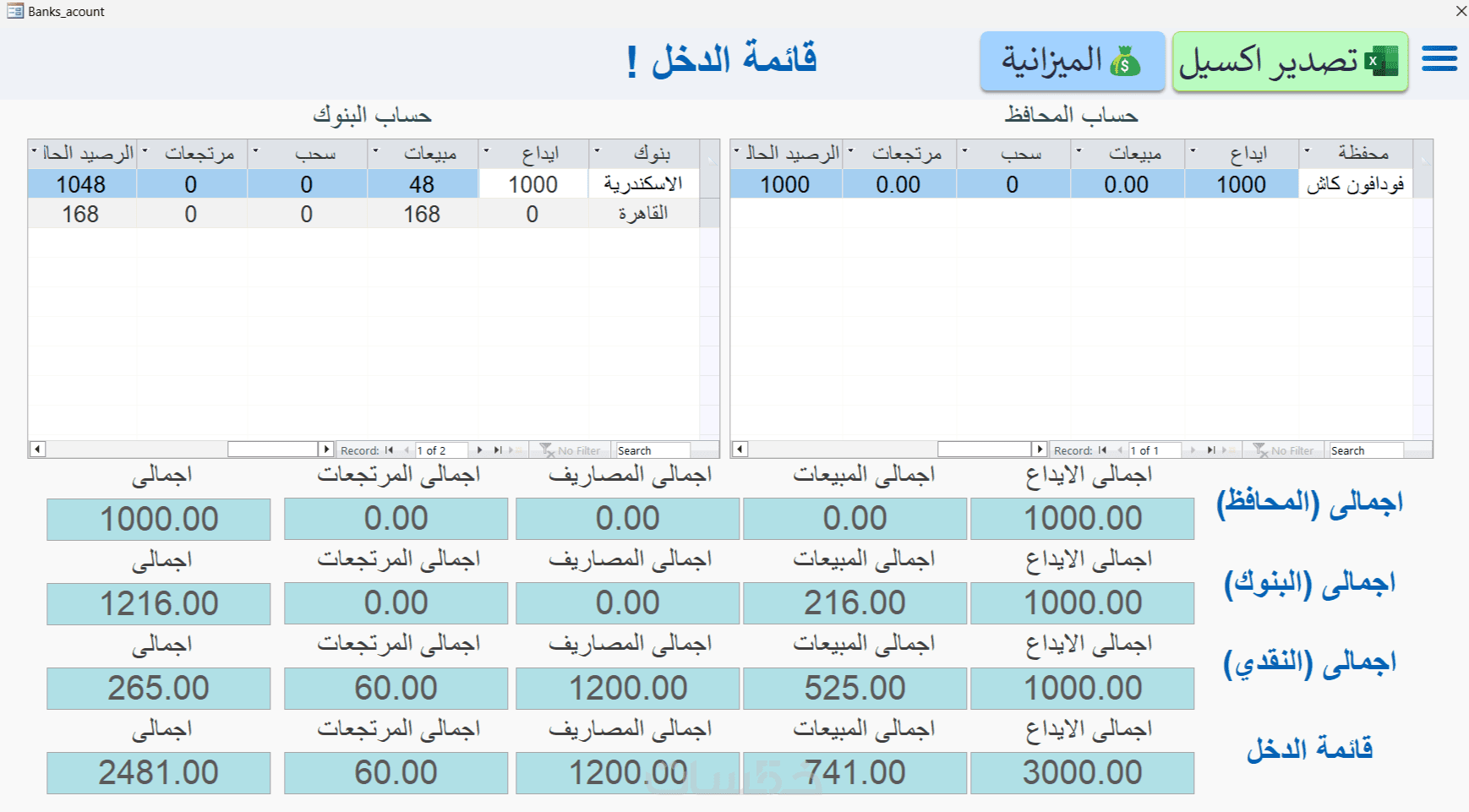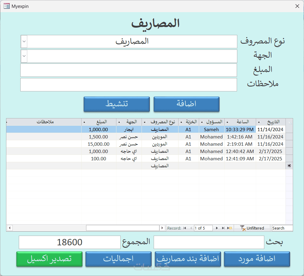 جدول بيانات مثل: العملاء، المنتجات، بنود الصرف أو الإيداع (علي حسب احتياجك)
