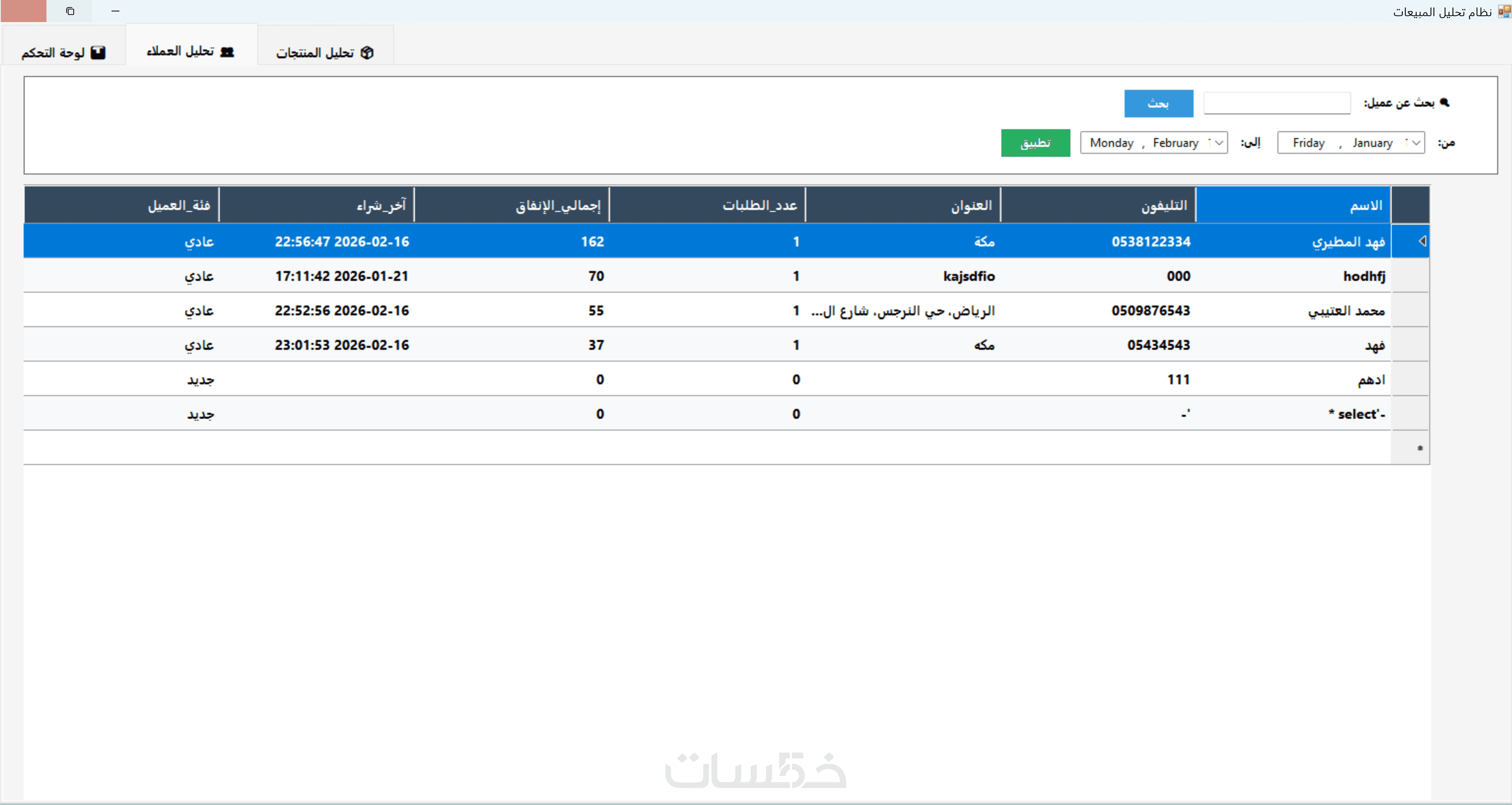 برنامج للتحاليل المبيعات وبيانات العملاء لبرنامج الكاشير