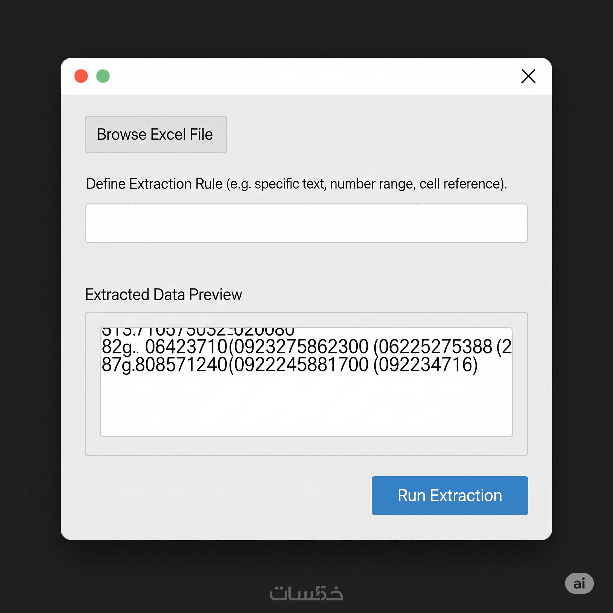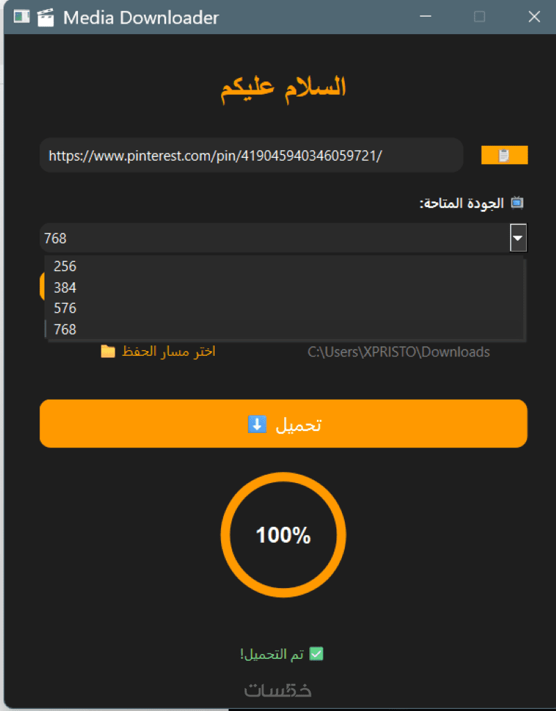 - يحتوي على 3–5 عناصر (زر تحميل – حقل رابط – شريط حالة، إلخ)