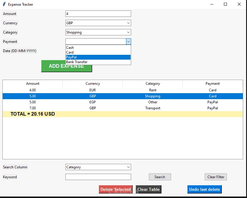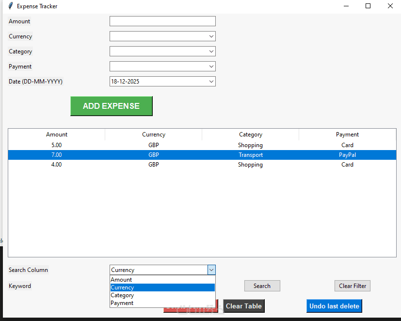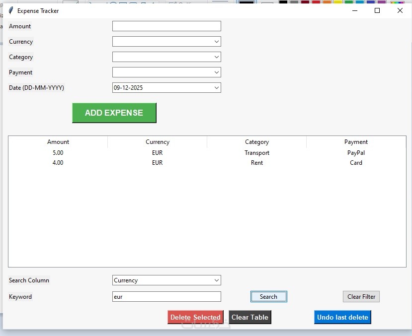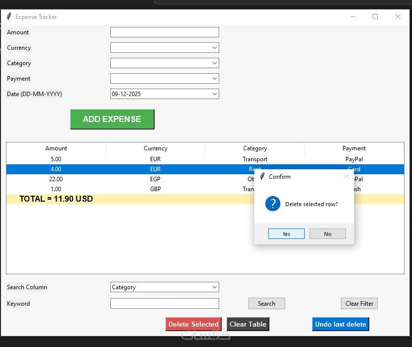 هل تبحث عن أداة دقيقة وسهلة لتتبع مصاريفك الشخصية أو مصاريف عملك؟ أقدم لك تطبيقاً حاسوبياً (Expense Tracker) مطوراً بلغة Python وواجهة Tkinter، يتميز بالسرعة والسهولة في الاستخدام.