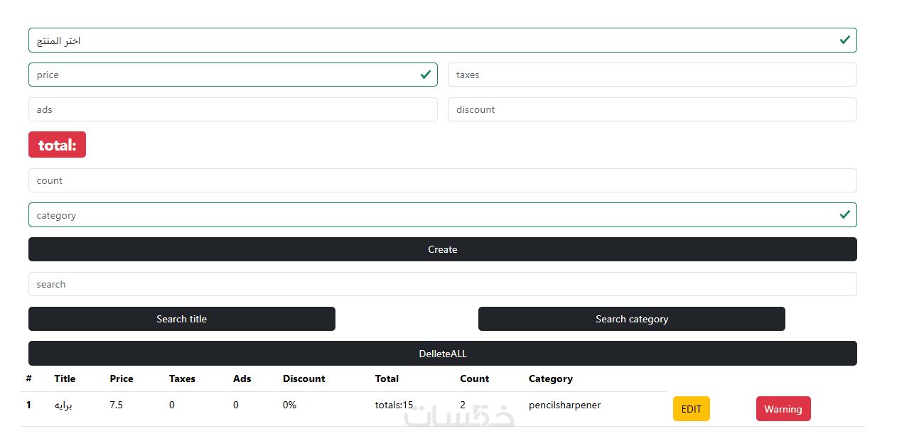 سأقوم بتوفير برنامج CRUD بسيط وجاهز يعمل مباشرة على المتصفح، تم تطويره باستخدام