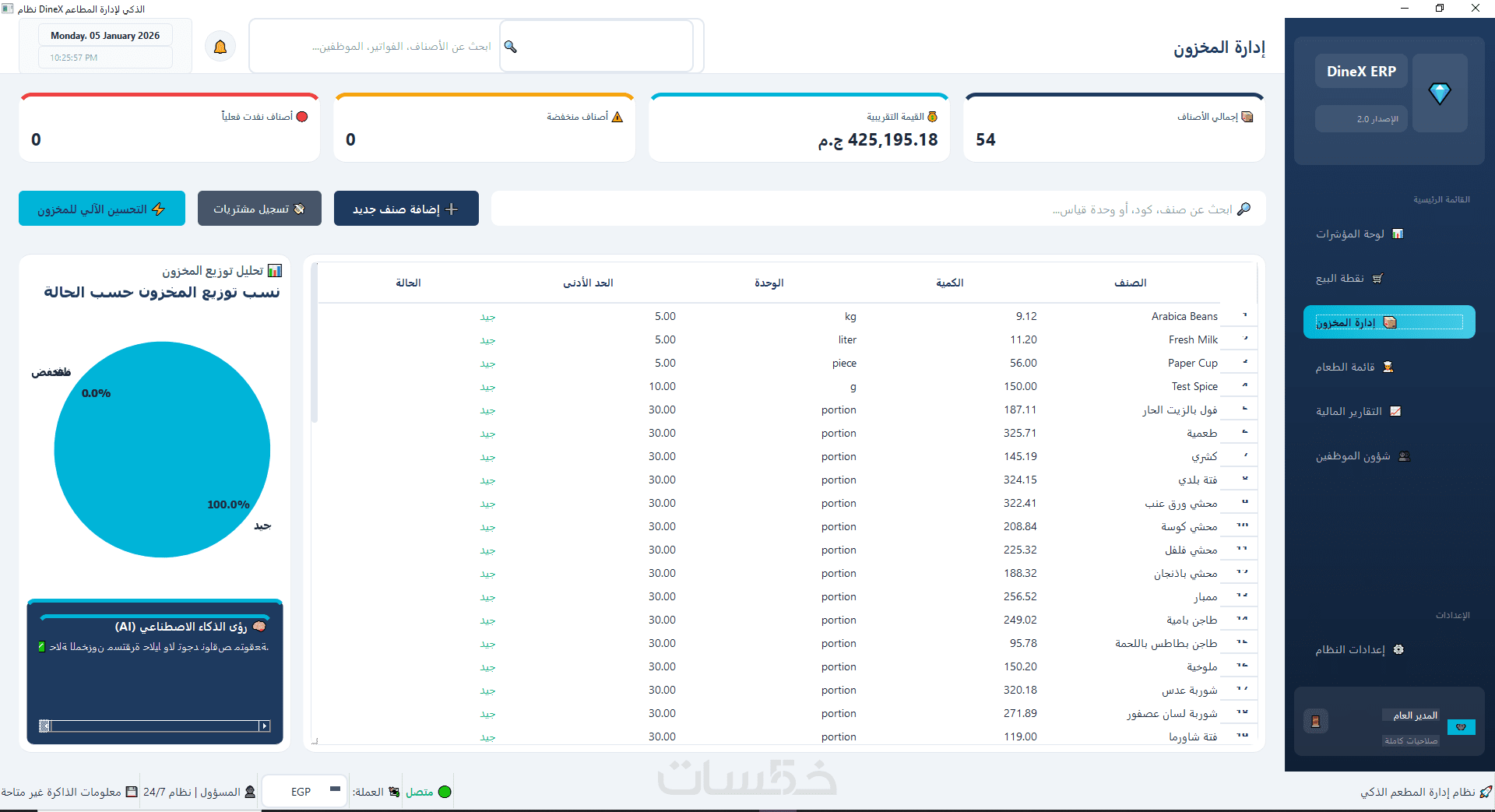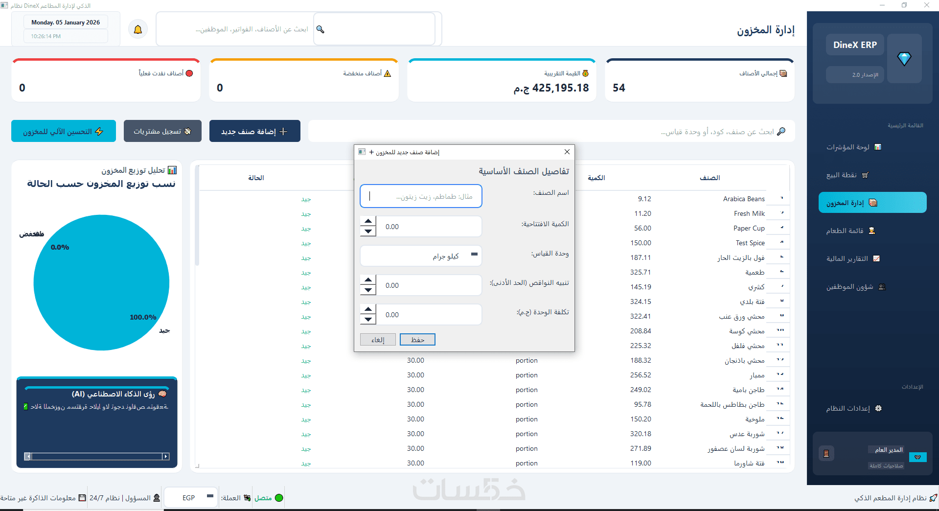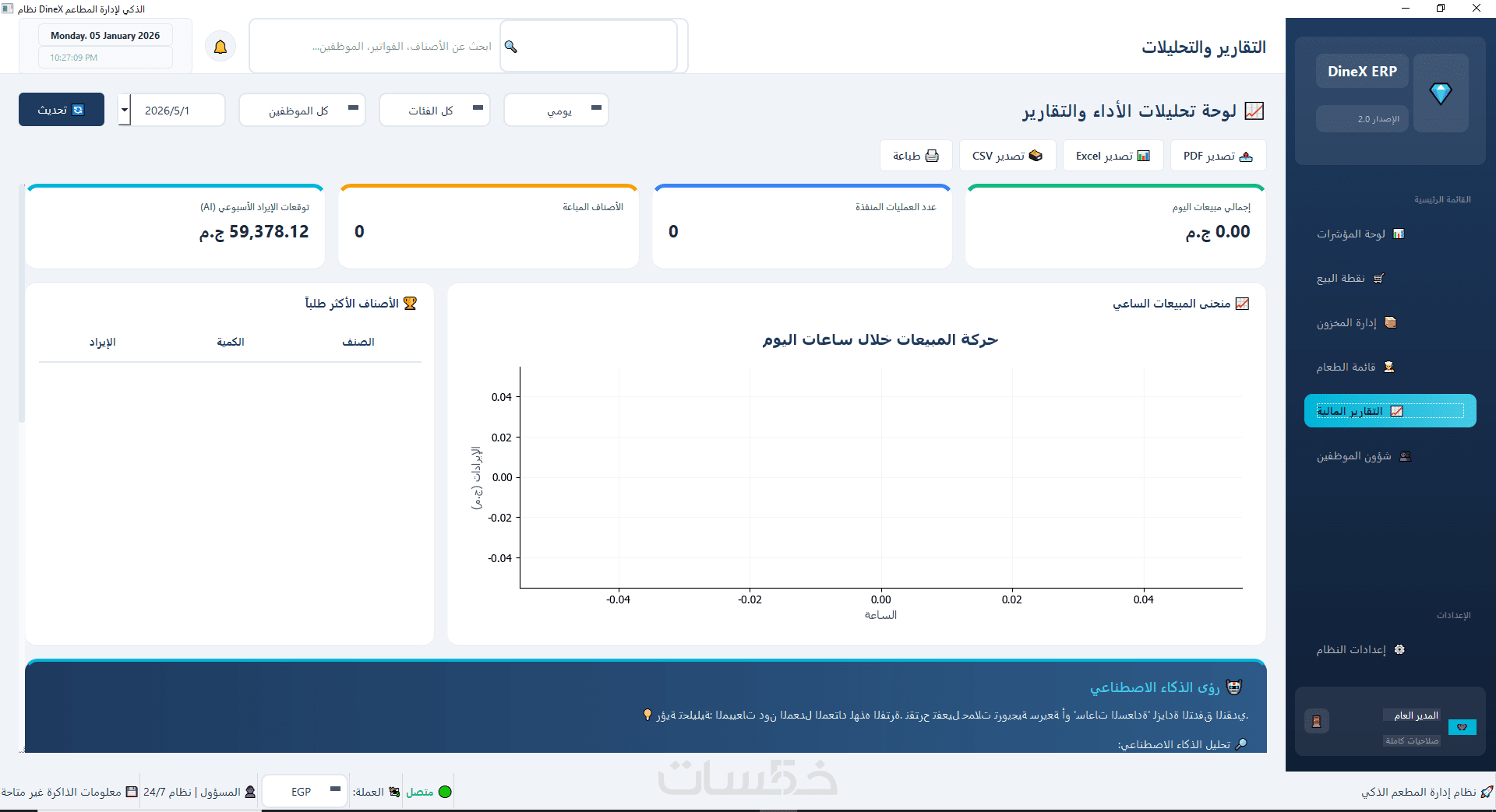 برنامج DineX لادارة المطاعم الذكي من تصميمي الشخصي هو حل متكامل لإدارة المطاعم يعتمد على تحليل البيانات والذكاء الاصطناعي لمساعدتك في اتخاذ قرارات دقيقة وفعّالة.