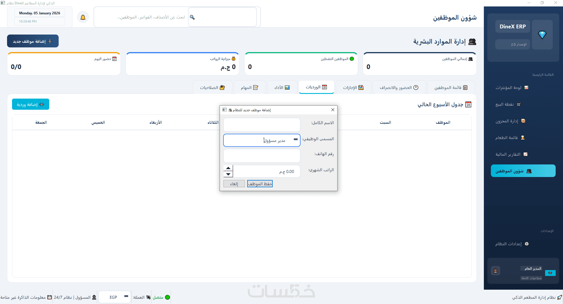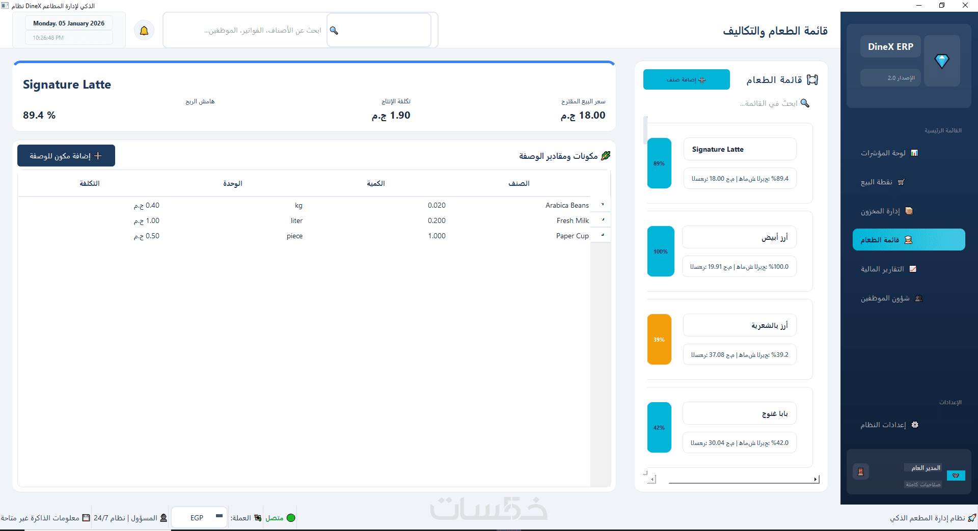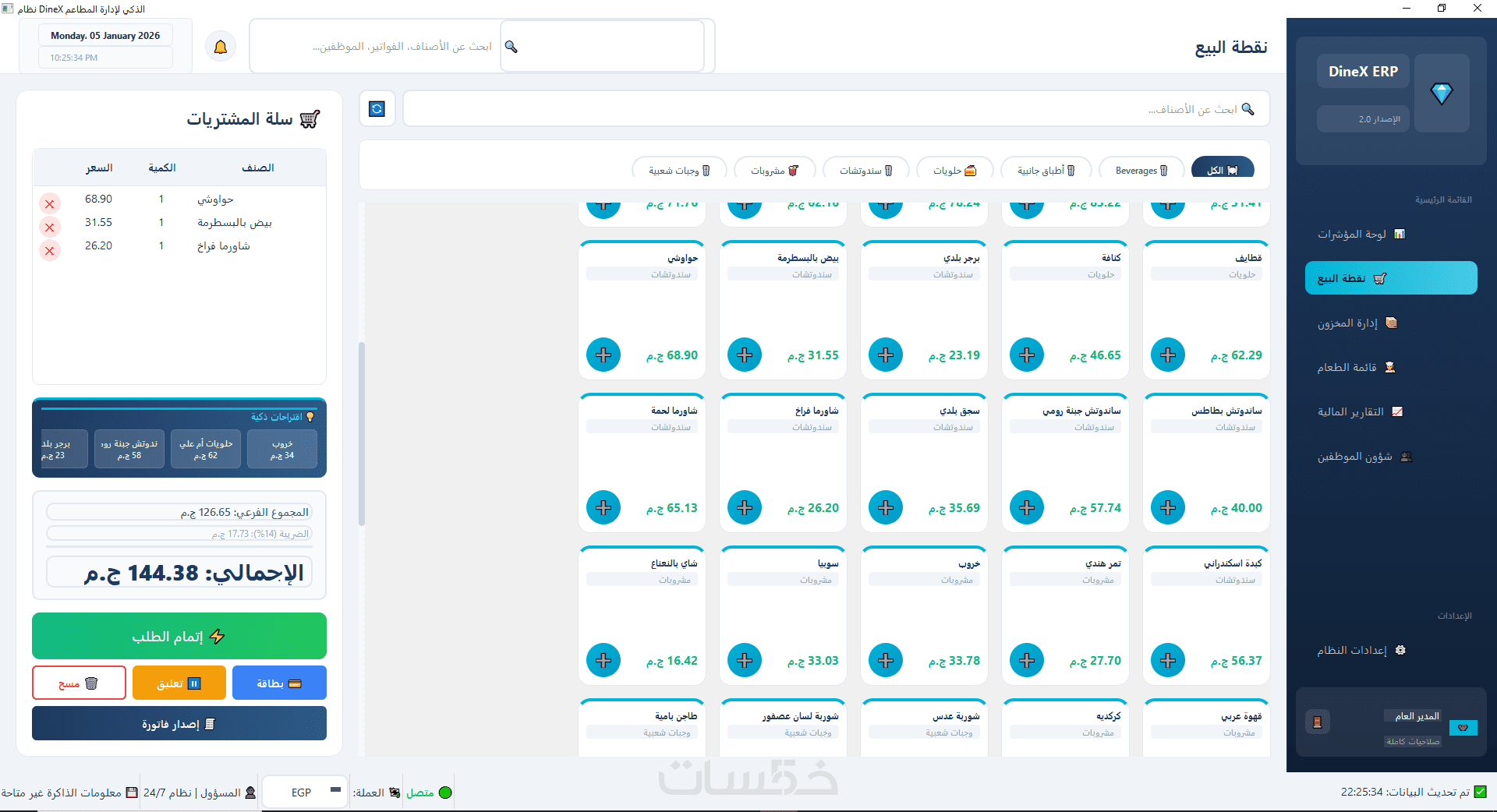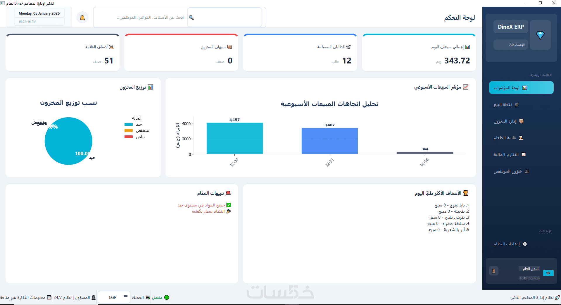 برنامج DineX لادارة المطاعم الذكي من تصميمي الشخصي هو حل متكامل لإدارة المطاعم يعتمد على تحليل البيانات والذكاء الاصطناعي لمساعدتك في اتخاذ قرارات دقيقة وفعّالة.