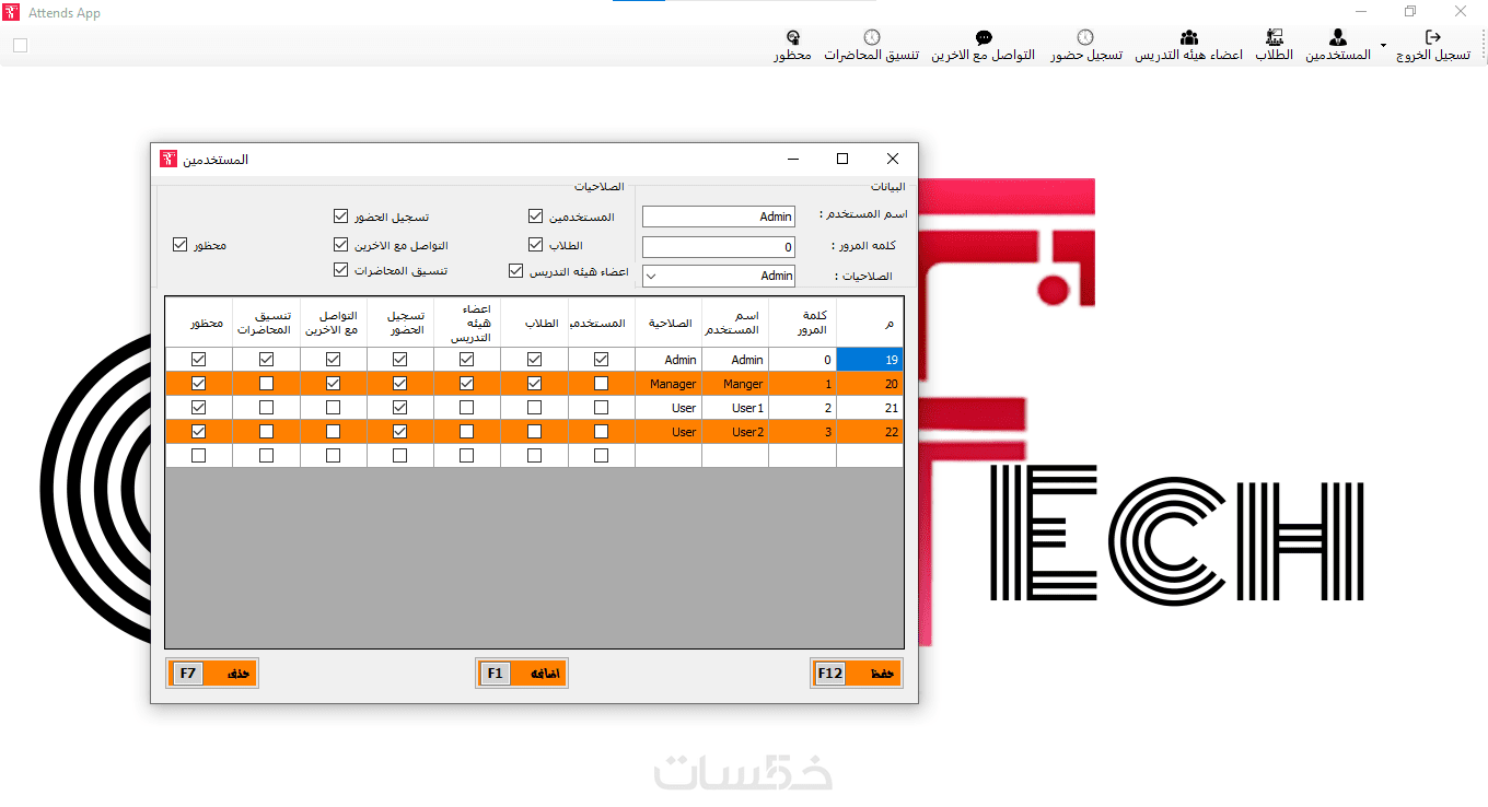 يوجد صلاحيات لمستخدمين البرنامج يمكنك التحكم بها و اعطاء الصلاحيات لمن تريد