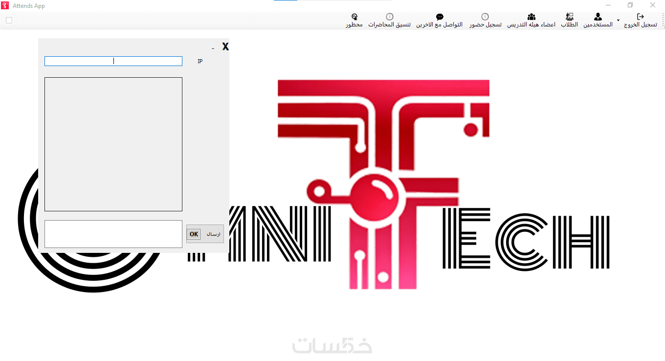 يتيح لك البرنامج من خلال نافذه التواصل مع الاخرين التواصل مع الاجهزه المتصله داخل الشبكه من خلال ال IP الخاص بالاجهزه