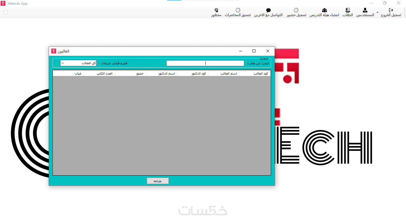 يمكنك طباعه تقارير مفصله لكل طالب عن حضوره و عدد المحاضرات و عدد الغياب