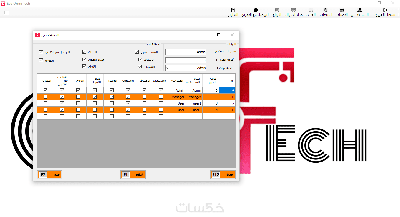 تحكم كامل في من يرى ماذا. يمكنك تحديد صلاحيات (المدير، الكاشير، الموظف) لكل قسم في البرنامج