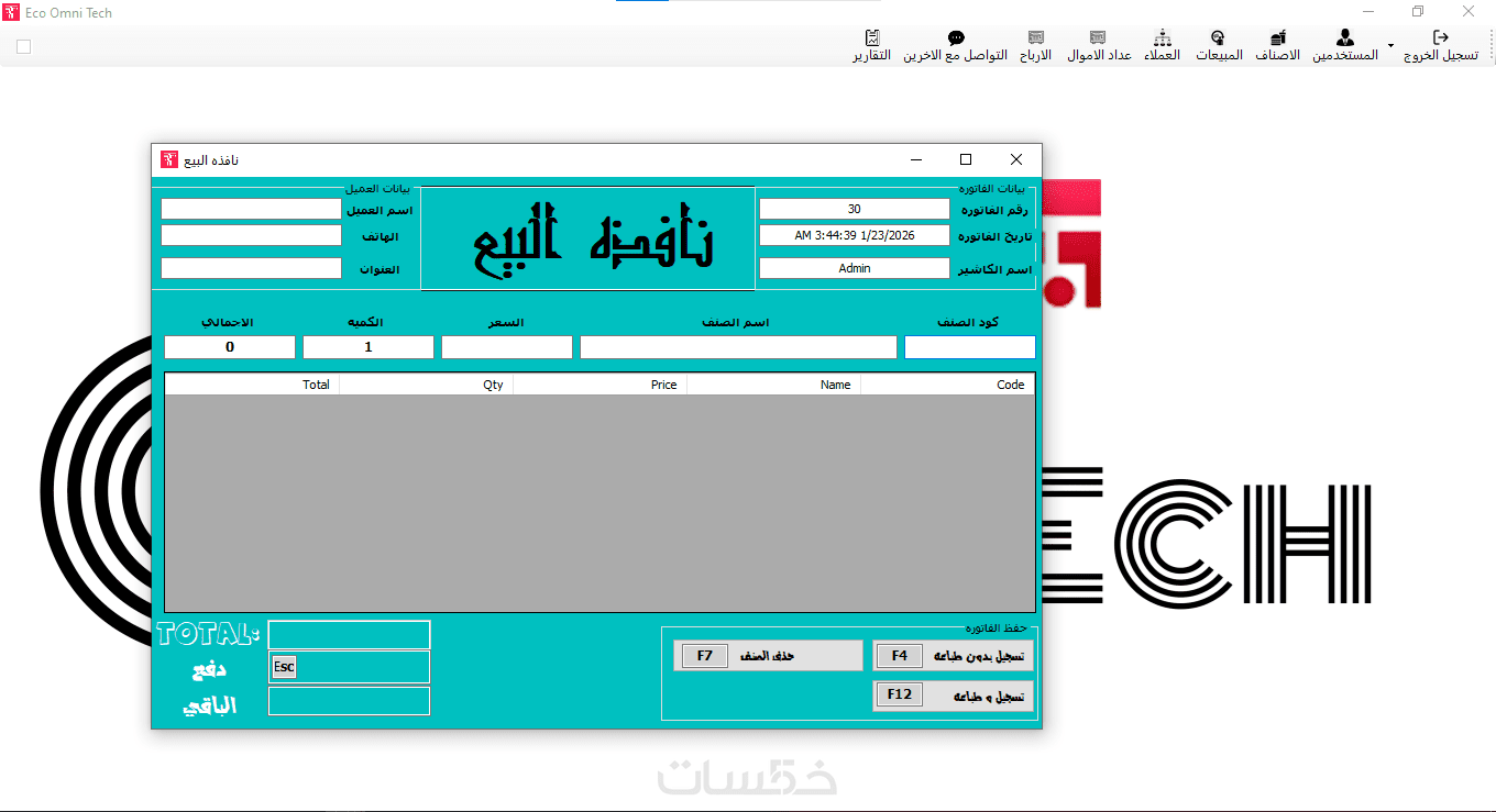 هل تبحث عن حل ذكي لإدارة نشاطك التجاري بدقة وسهولة؟ أقدم لكم برنامج Eco Omni Tech، النظام الذي يجمع بين سهولة الاستخدام وقوة الأداء، مصمم خصيصاً ليناسب المحلات التجارية، السوبر ماركت، ونقاط البيع بمختلف أنواعها.