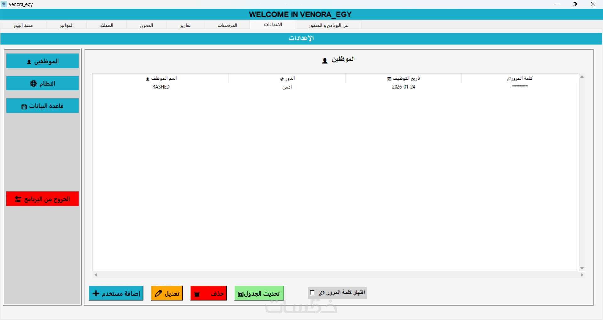 صلاحيات مختلفة: أدمن، كاشير، مخزن.