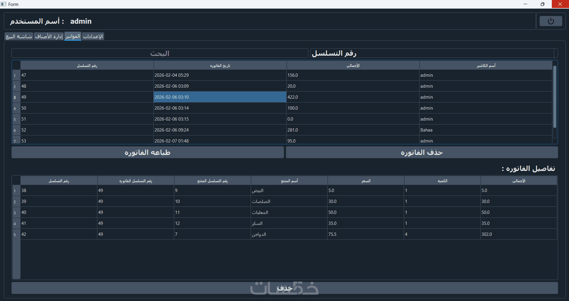 تخصيص الفاتوره بشعار المحل و بيانات التواصل الخاصه بالعميل