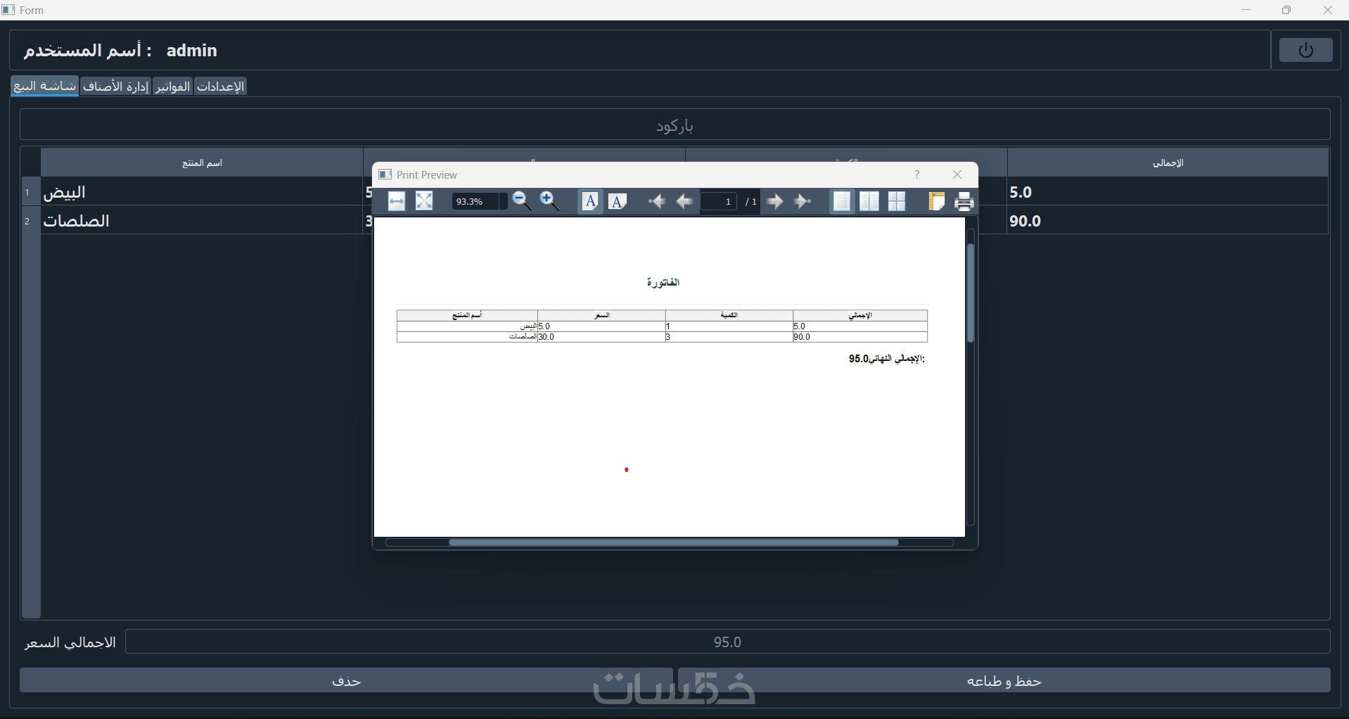 إصدار فواتير منسقة (PDF/Thermal) مع معاينة قبل الطباعة.