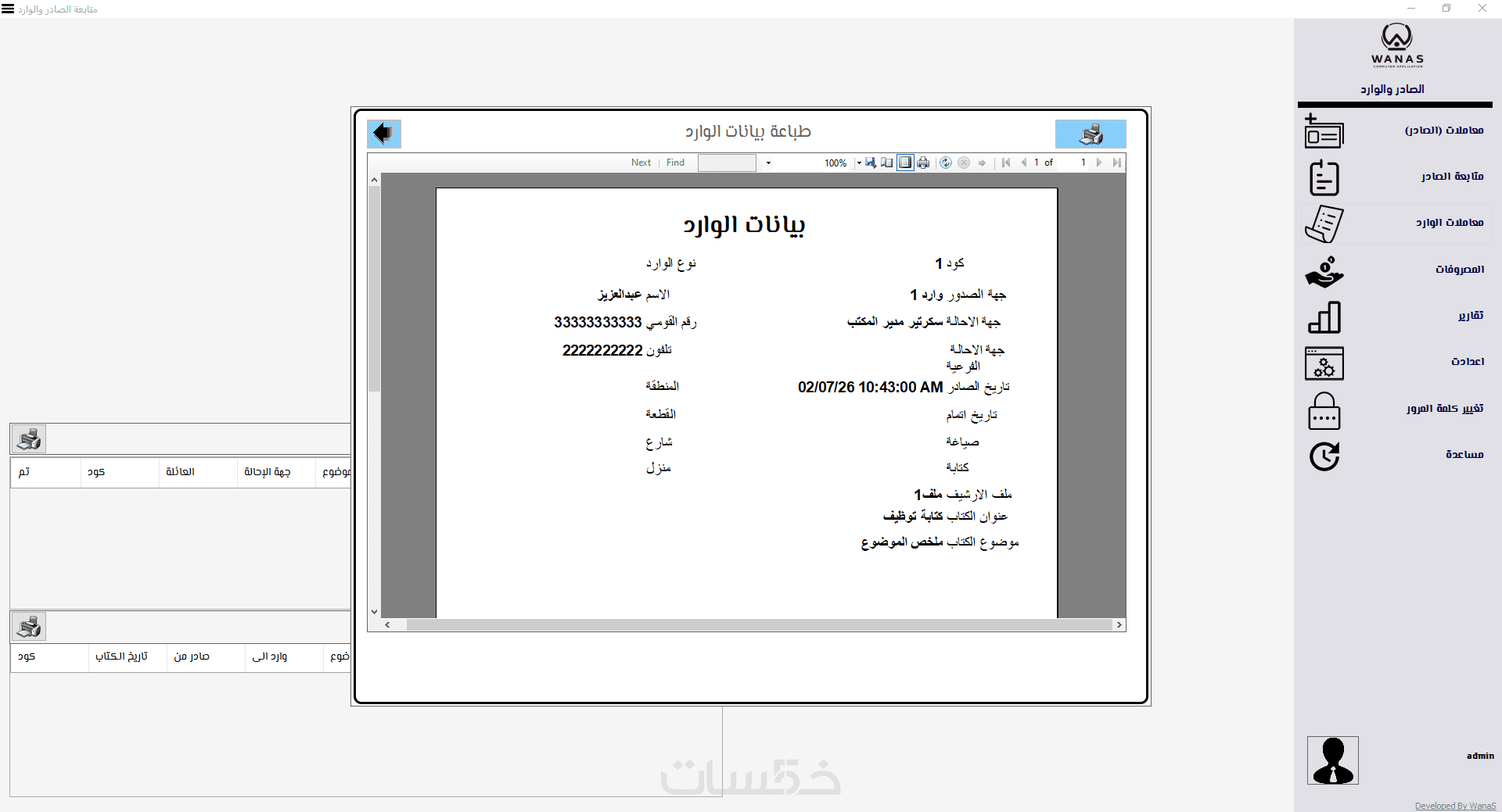 صممت هذا البرنامج ( معاملات الصادر والوارد ) لإدارة وتوثيق المعاملات الرسمية التي يديرها المكتب او الشركة داخل الجهات والمؤسسات ، وتكون الفائدة الكبيرة بعد ادخال المعاملات وطباعة ورقة للمعاملة ، الفائدة الأكبر في فرز وطباعة المعاملات التي تخص جهة او وزارة محددة ، وبذلك تسهل مهمة المسئول عن المعاملات وتتبعها والرجوع إليها بسرعة وتغيير حالتها من متداولة الى منجزة .... الخ ، فالبرنامج يعتبر بديل افضل عن الاعتماد على الدفاتر والملفات الورقية فقط .