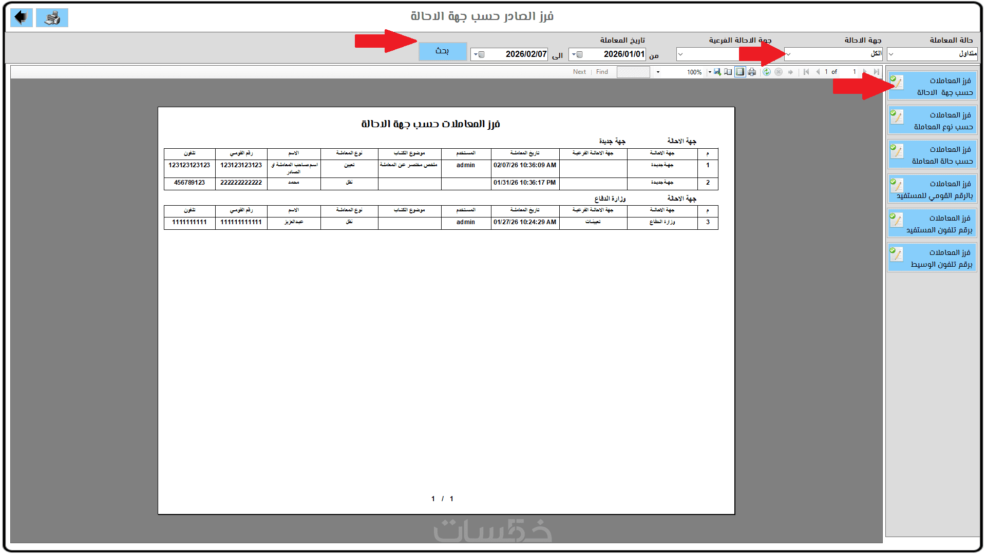 الوصول لأي معاملة خلال ثواني باستخدام فلاتر متعددة مثل: