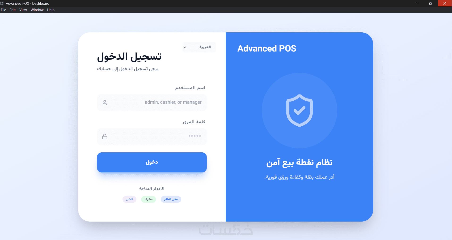 الصلاحيات: دعم أدوار المستخدمين (مدير، مشرف، كاشير).
