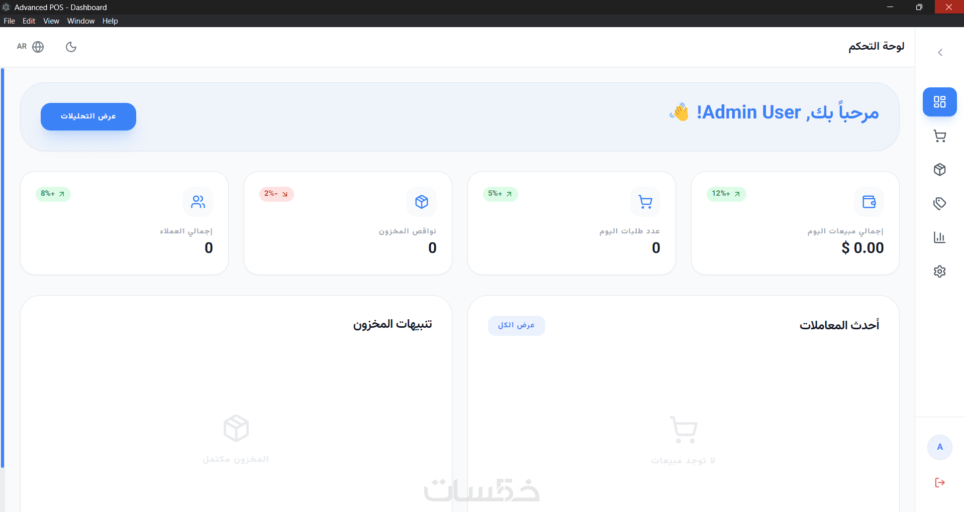 أقدم لك نظام نقاط بيع (POS) متطور وسريع مبني بأحدث التقنيات (Electron & React) ليعمل كتطبيق سطح مكتب (Desktop Application) بكفاءة عالية دون الحاجة لاتصال دائم بالإنترنت.