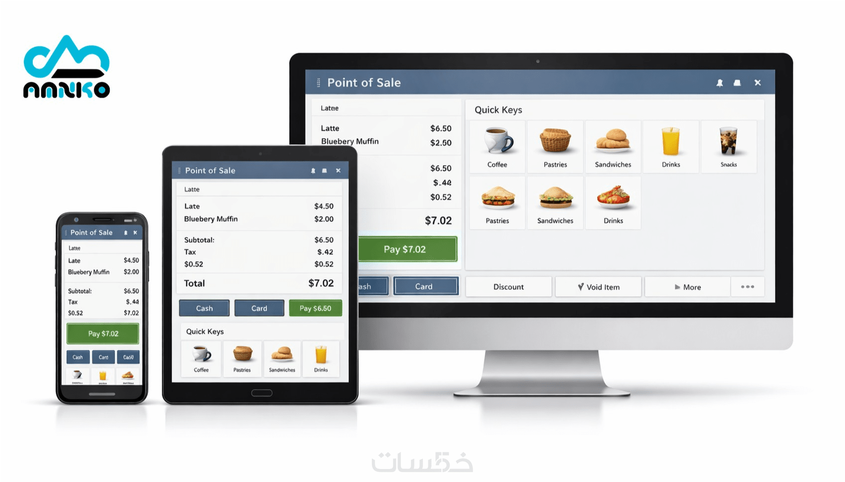 واجهة بيع سريعة لإتمام الفواتير وتعديل الكمية والخصم بسهولة.