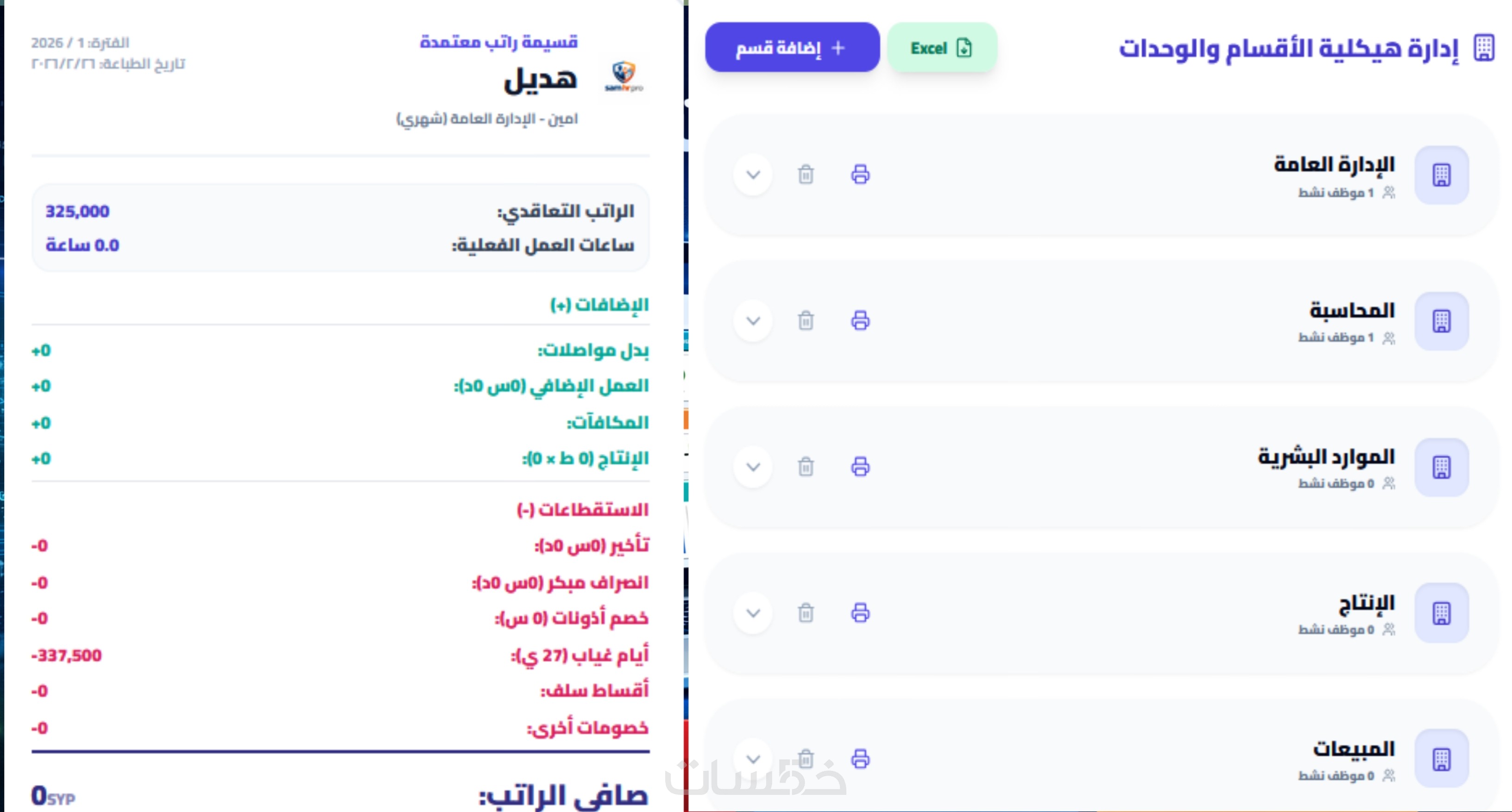 • إدارة الأقسام والوظائف