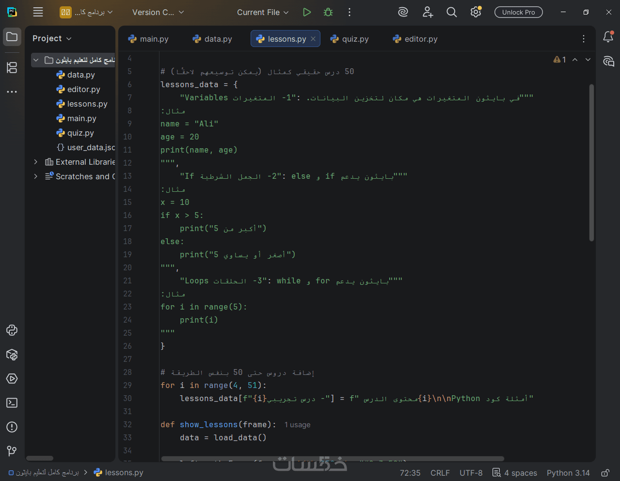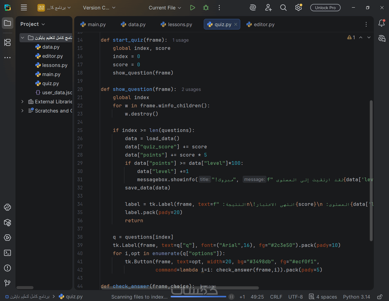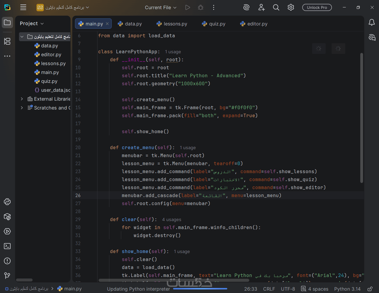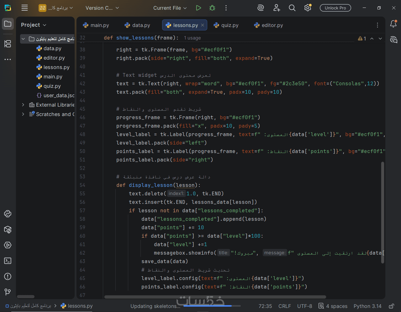 3- برمجة التطبيق: كتابة كود نظيف ومرن باستخدام لغه بايثون .