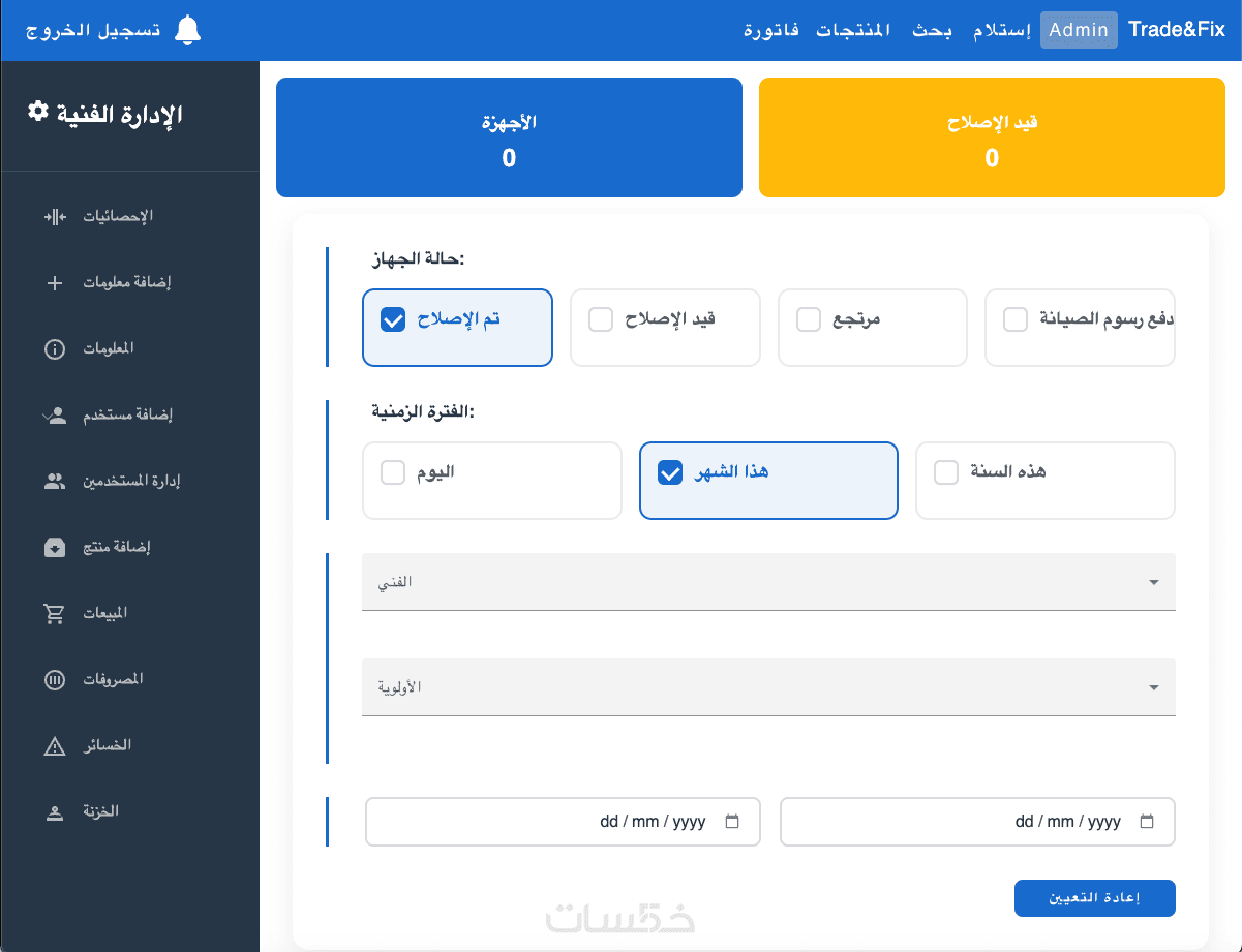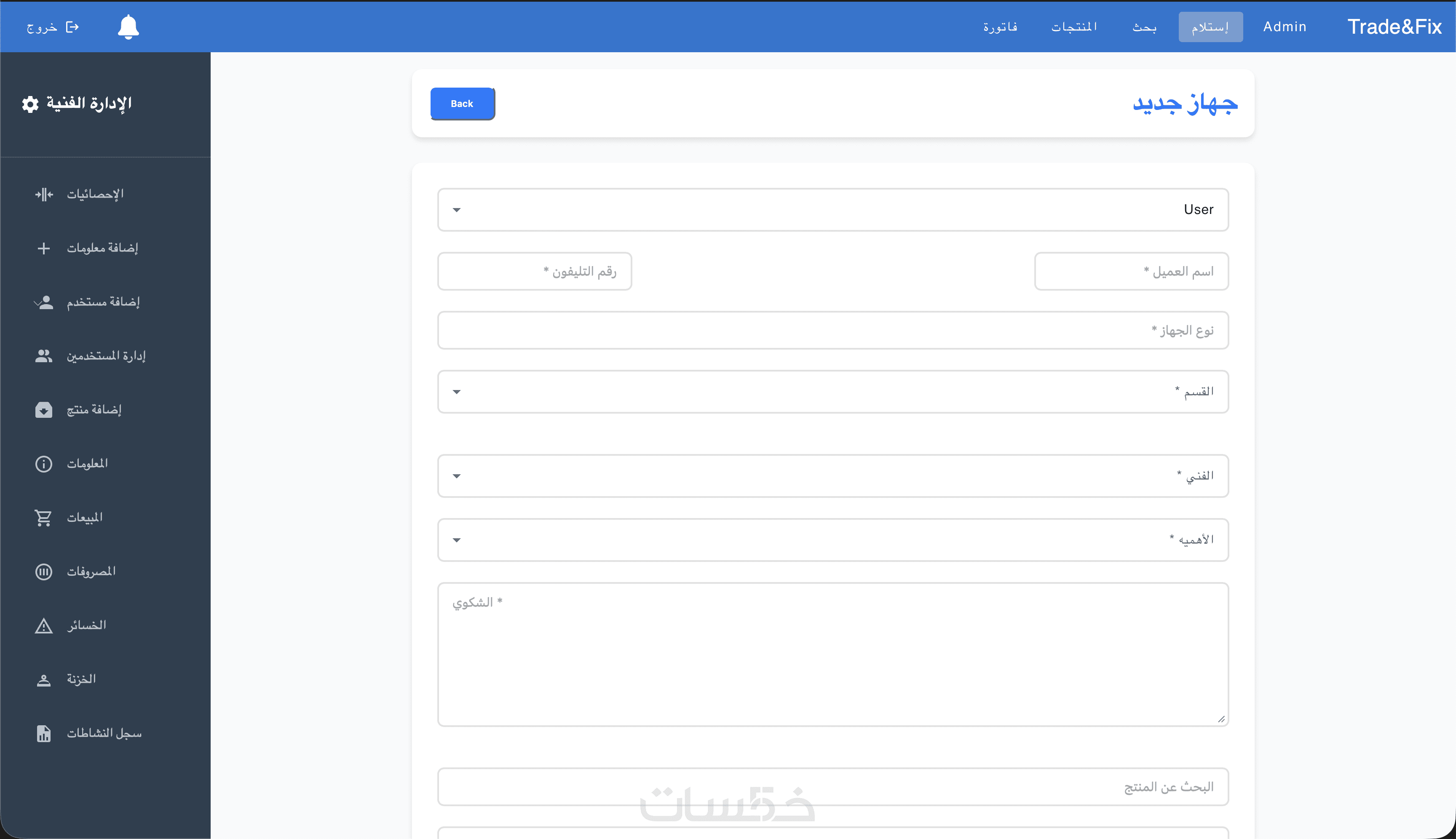 • نظام صلاحيات للمستخدمين ( Admin – User - Tech)