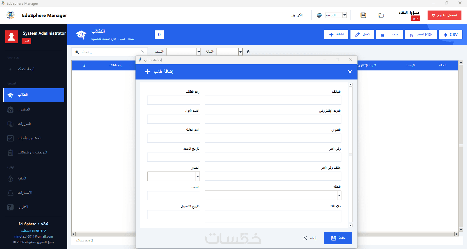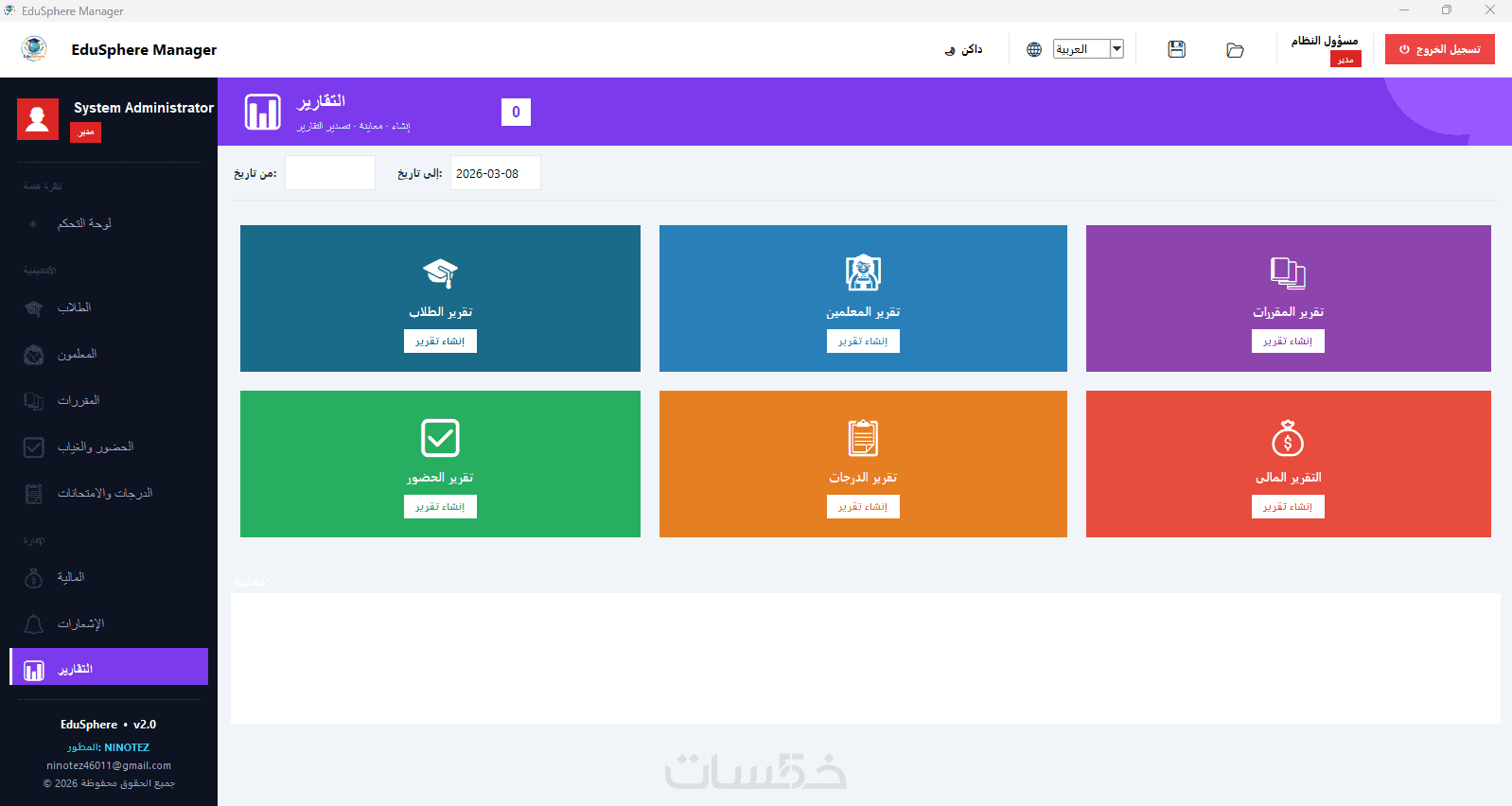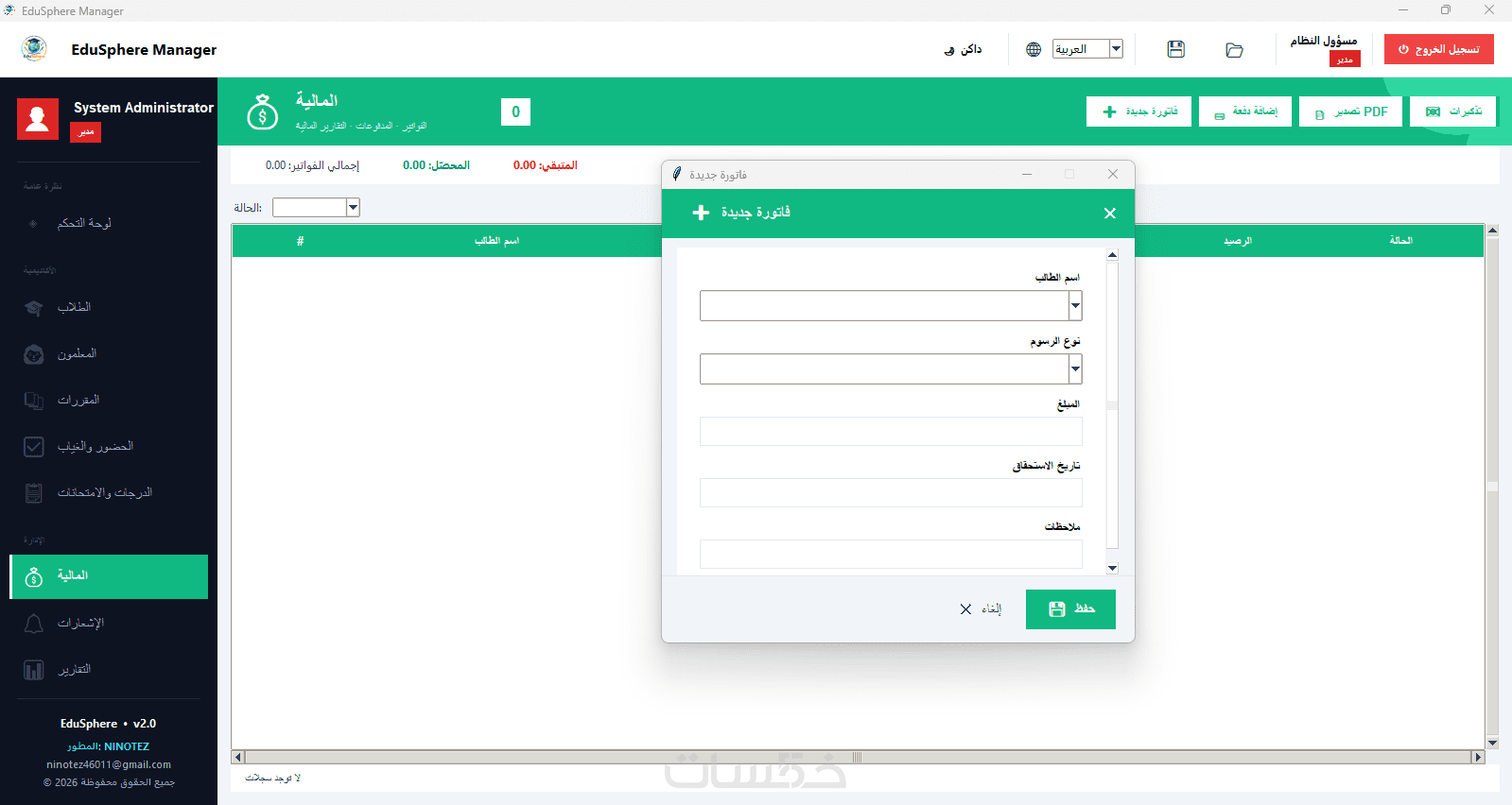 برنامج EduSphere الاحترافي لإدارة المدارس والمراكز التعليمية.