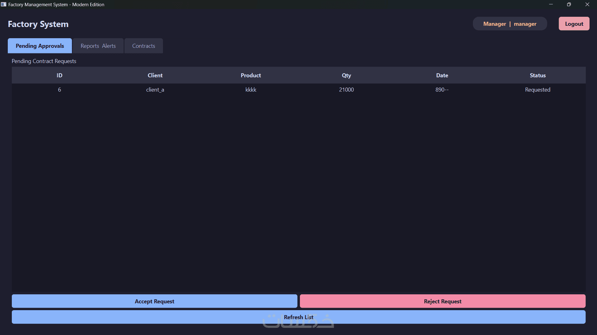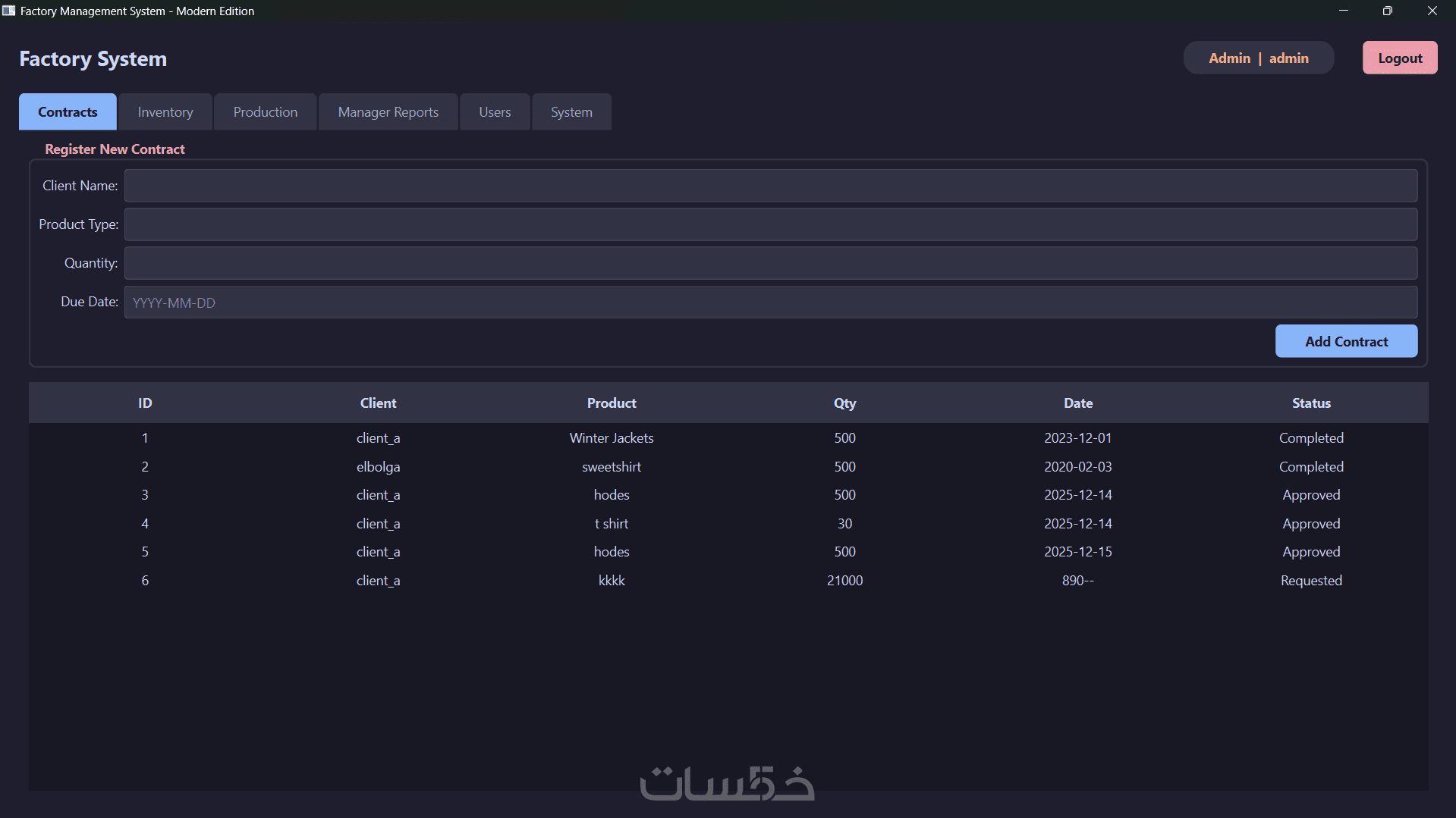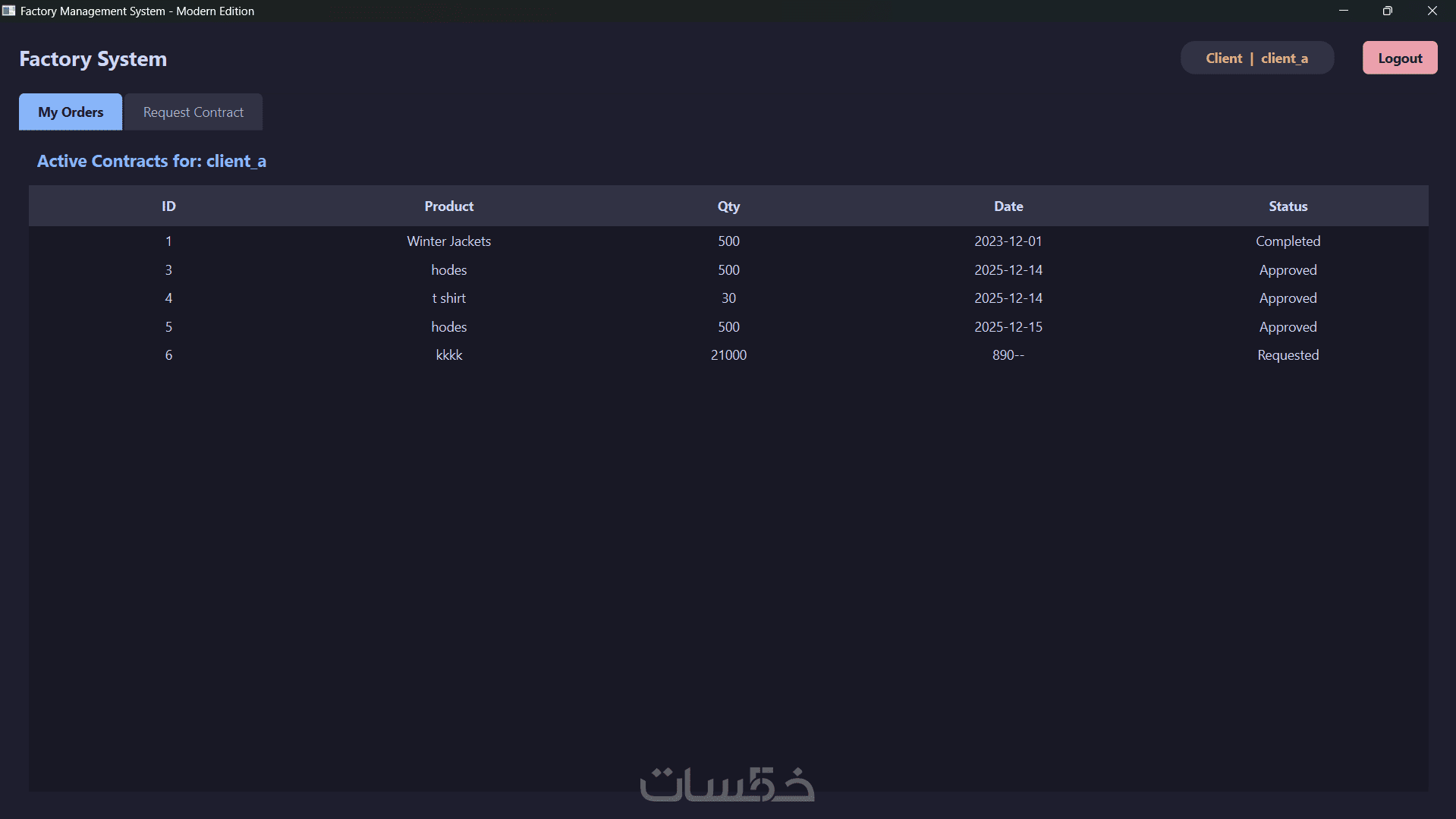 هل تبحث عن حل ذكي ومنظم لإدارة عمليات مصنعك بعيداً عن تعقيدات الجداول الورقية؟ أقدم لك برنامجاً احترافياً لإدارة المصانع، مصمماً بأحدث تقنيات Python وواجهة مستخدم عصرية (Modern UI) تعتمد على مكتبة PyQt6 لضمان السرعة، السهولة، والمظهر الجذاب.