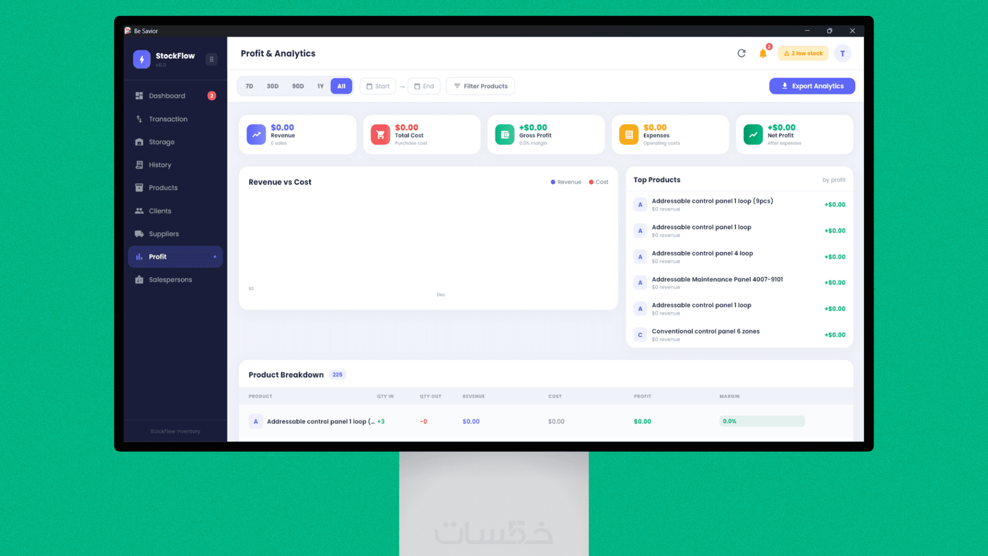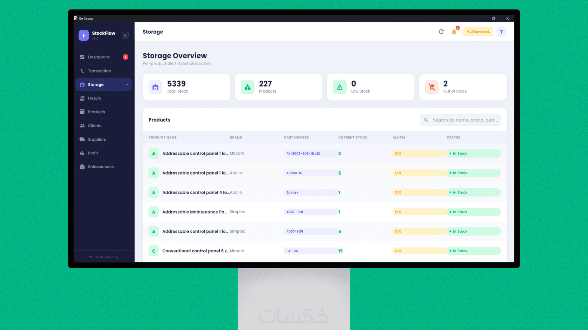 قاعدة بيانات محلية (SQLite) أو قاعدة بيانات سحابية (Firebase) حسب اختيار العميل.