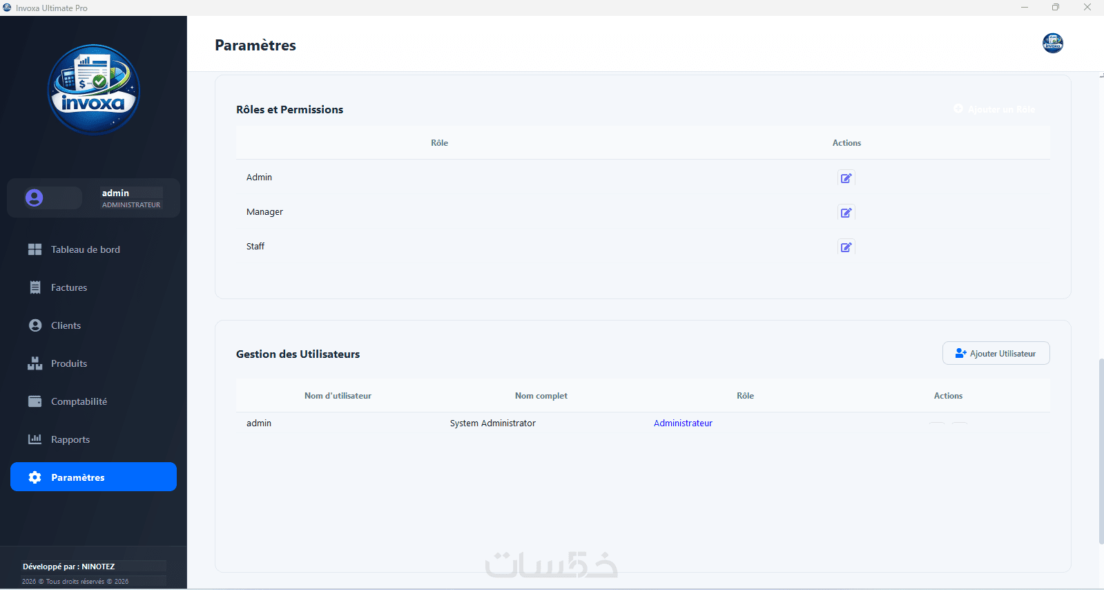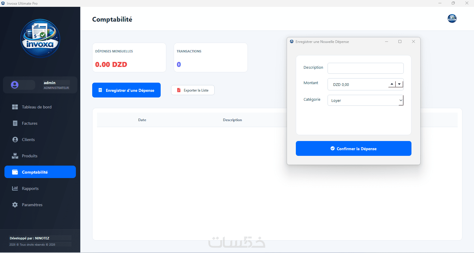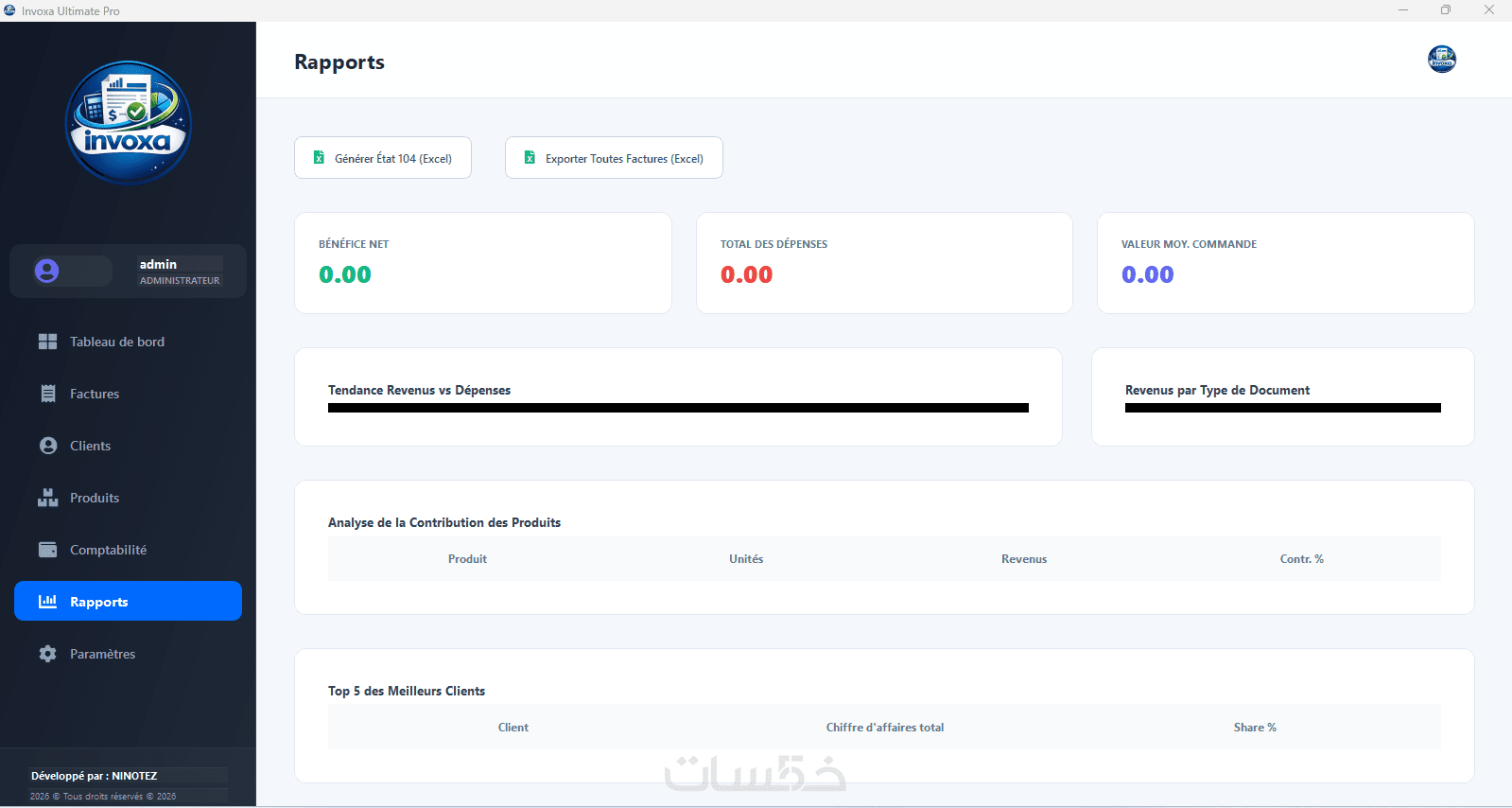 دعم تلقائي لحساب ضريبة القيمة المضافة (TVA) والطابع المالي (Timbre Fiscal) حسب المعايير المعمول بها.