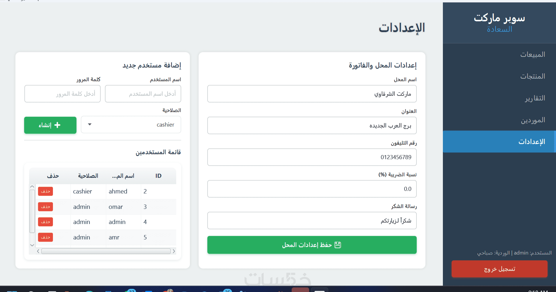نظام صلاحيات آمن: حسابات مستقلة للمدير والكاشير لضمان سرية البيانات.