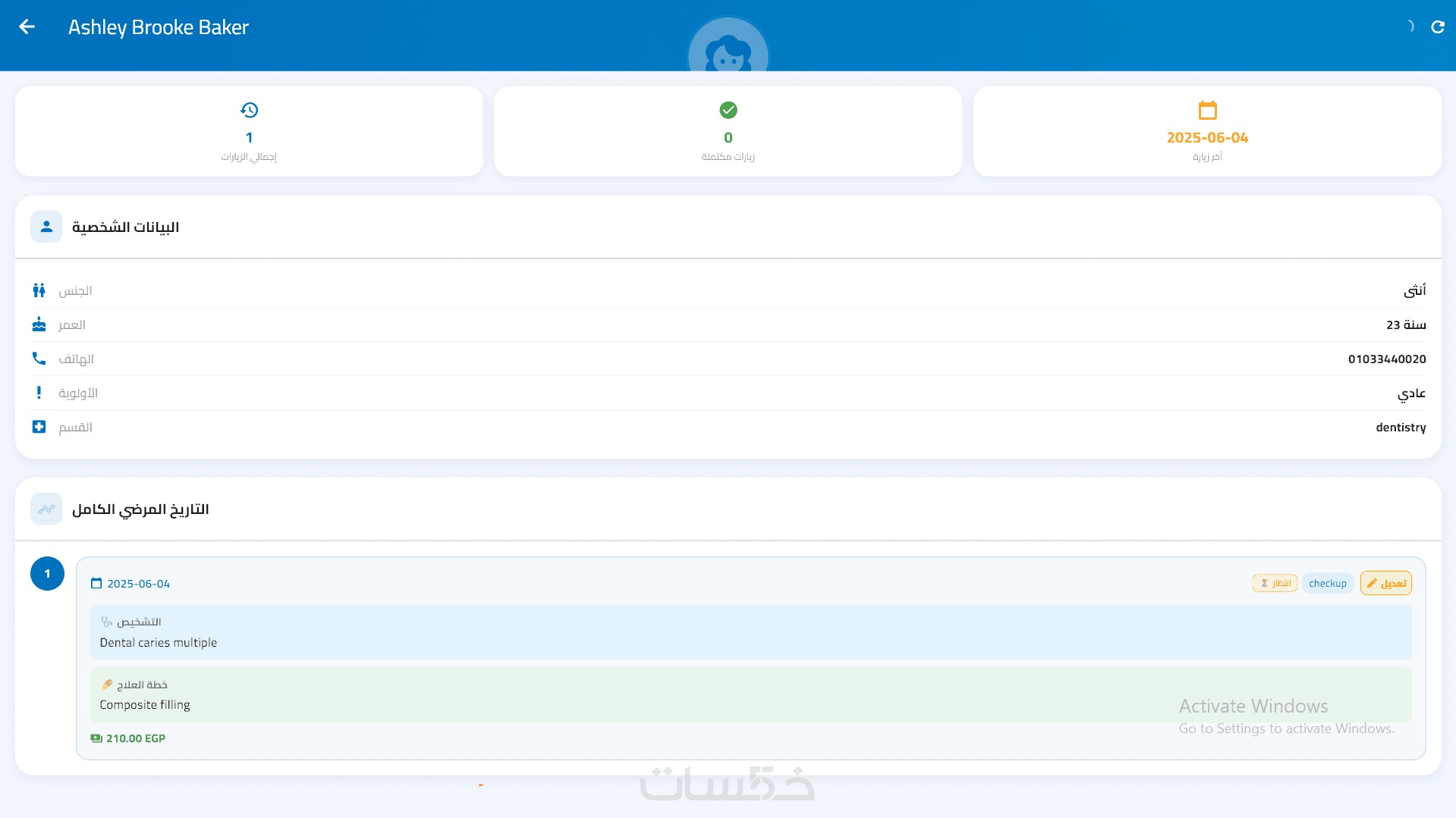 تسجيل بيانات المرضى ومتابعتها مع تحليل الأداء والدخل