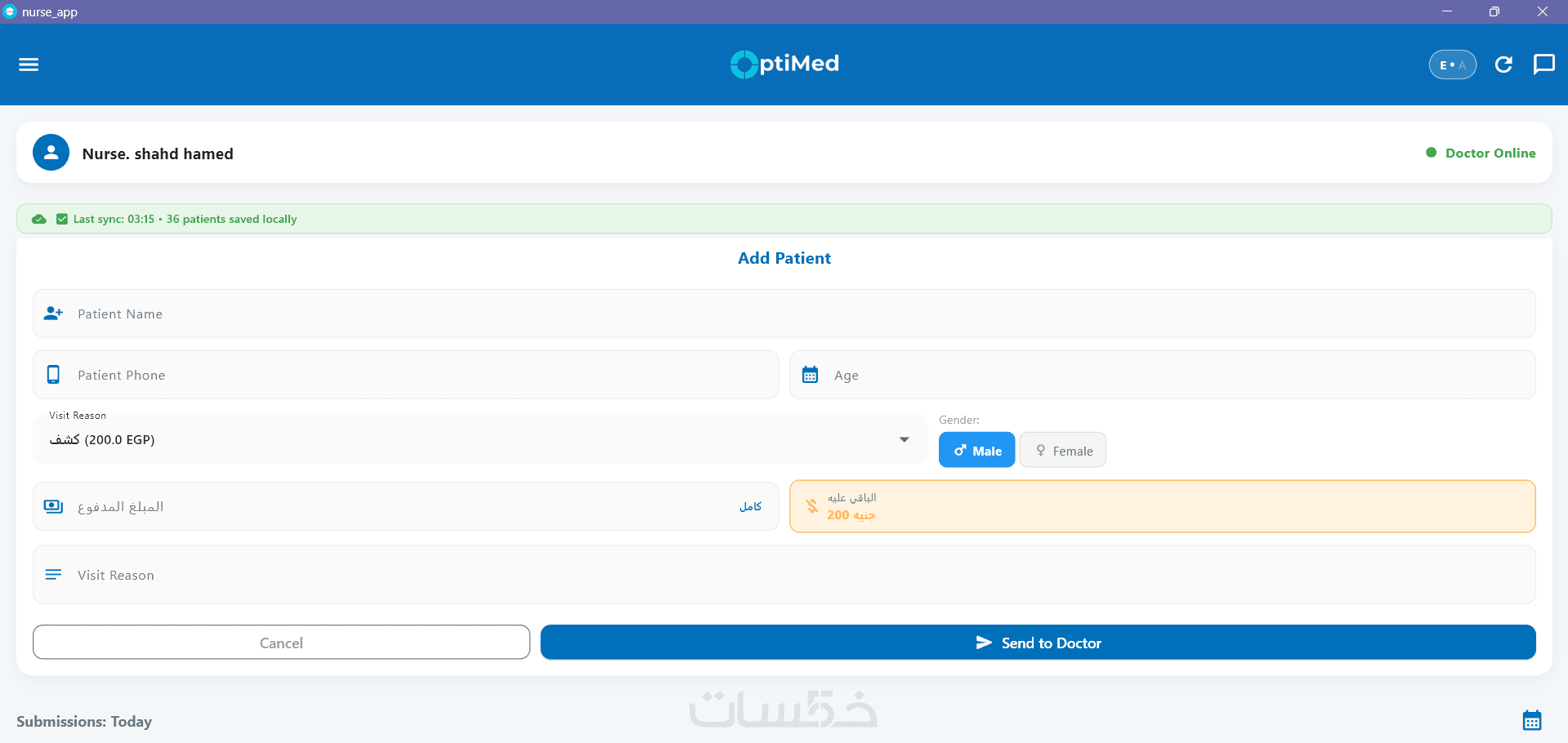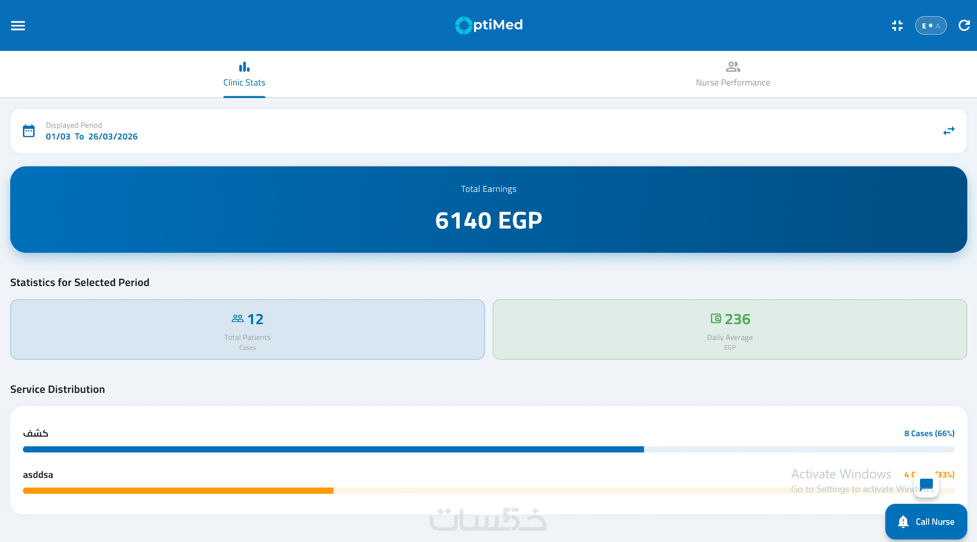 نظام متكامل لإدارة العيادات، ينظم عمل الطبيب والممرضة، ويوفر تجربة منظمة للمرضى، مع أدوات مخصصة لمتابعة الأداء والدخل وتنظيم الدور.
