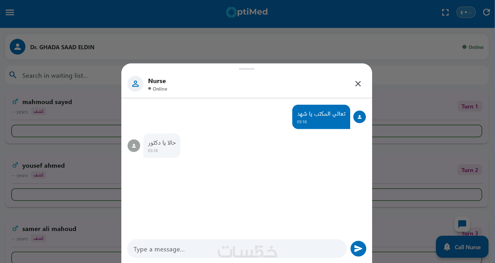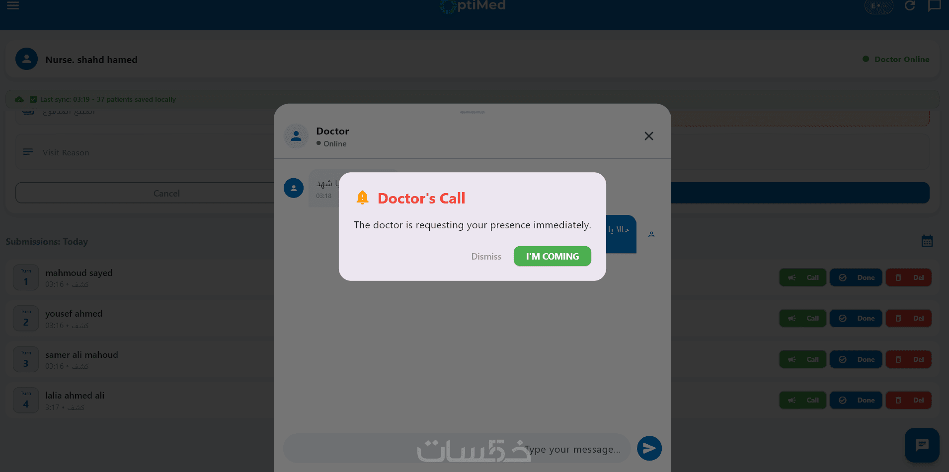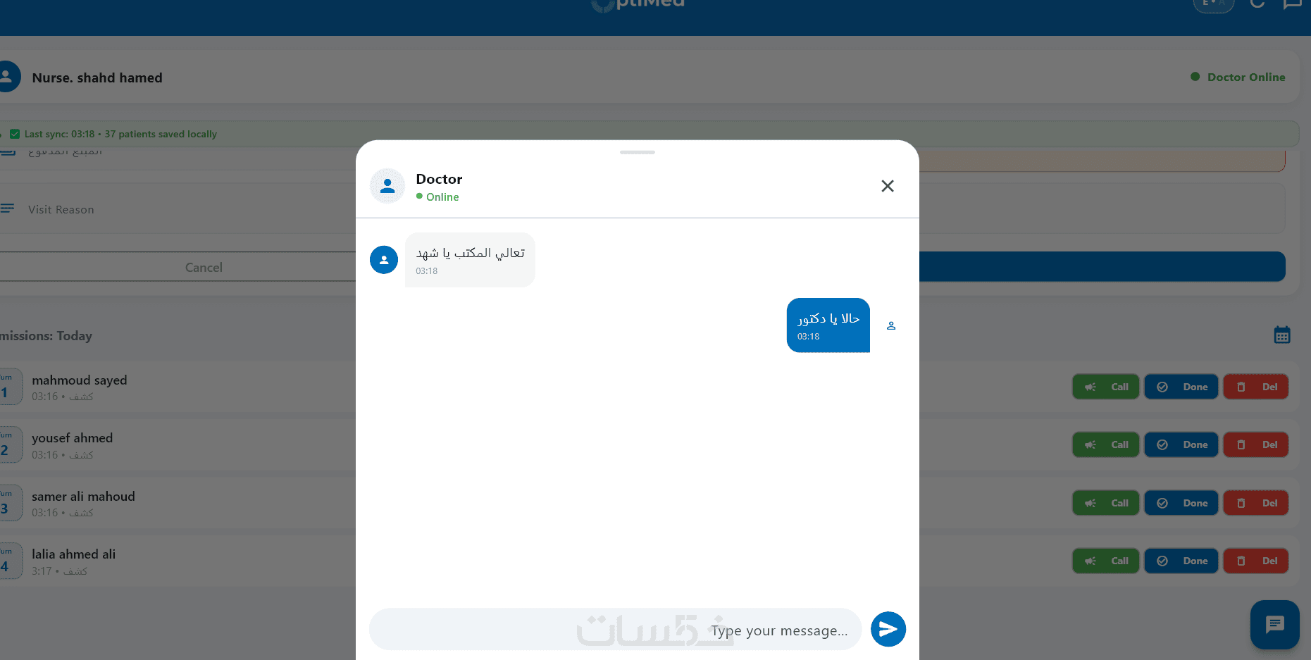 نظام تواصل داخلي بين الطبيب والممرضة عبر الدردشة الفورية مع إمكانية الاتصال المباشر عند الحاجة