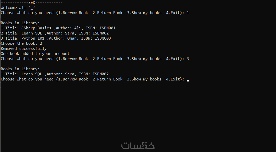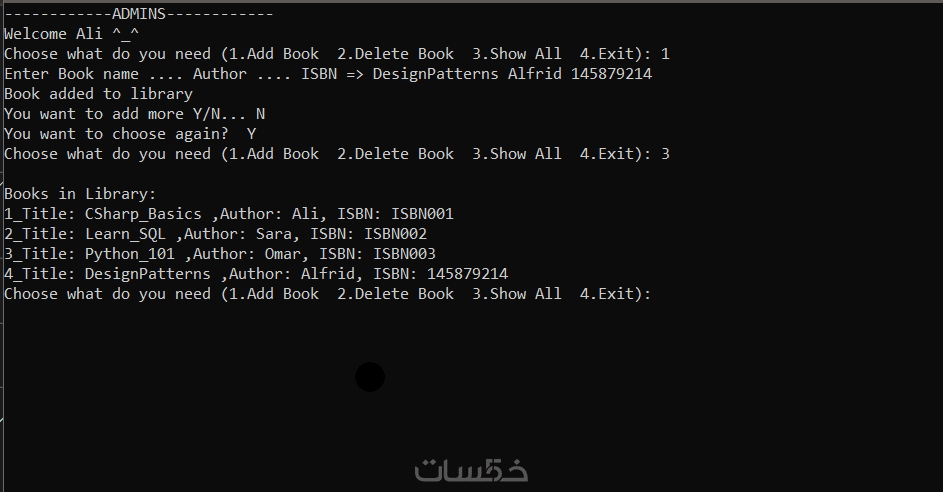 أقدم لك تطوير نظام إدارة مكتبة باستخدام C# (Console Application) مع تطبيق مفاهيم Clean Code وDesign Patterns.
