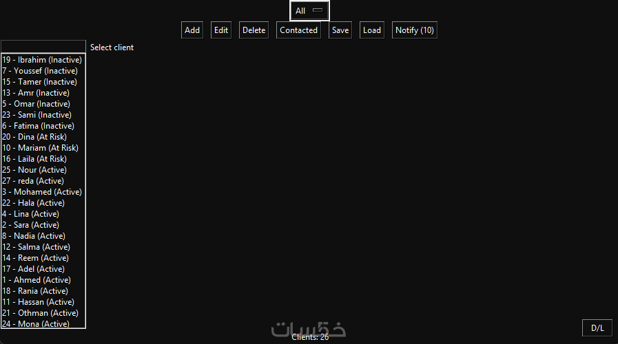 * تصنيف العملاء (نشط / في خطر / غير نشط)