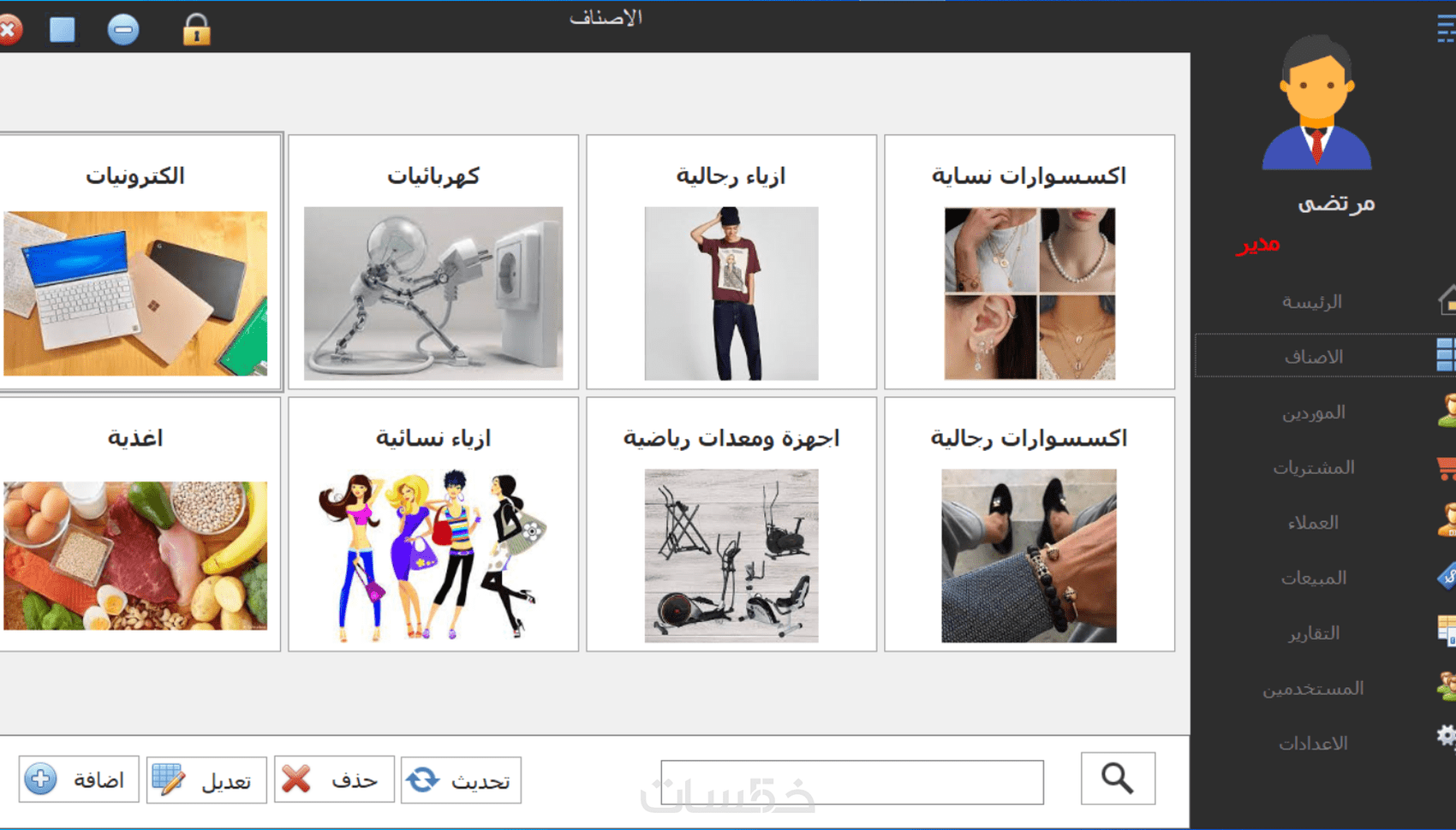 أصناف كمثال (صنف الأزياء - صنف الأجهزة الكهربائية .... الخ).