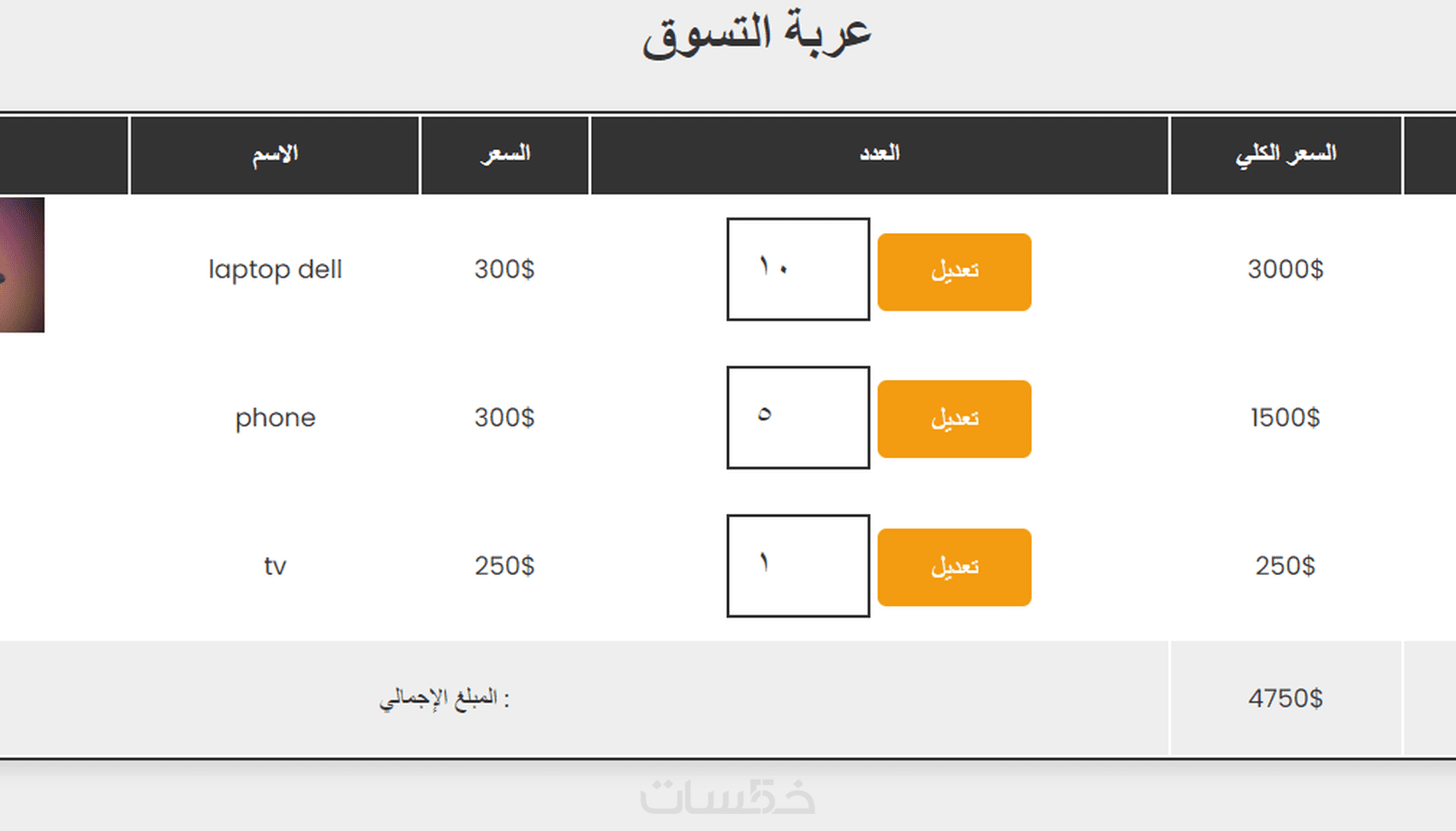 صفحة عربة التسوق
