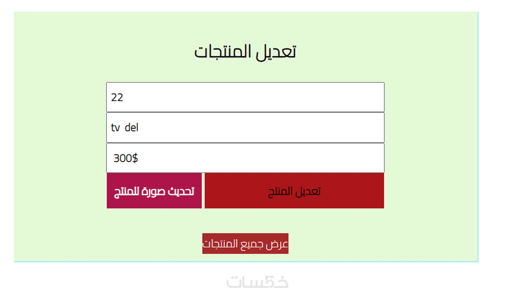 صفحة التعديل او حذف المنتجات(لوحة الادمن)