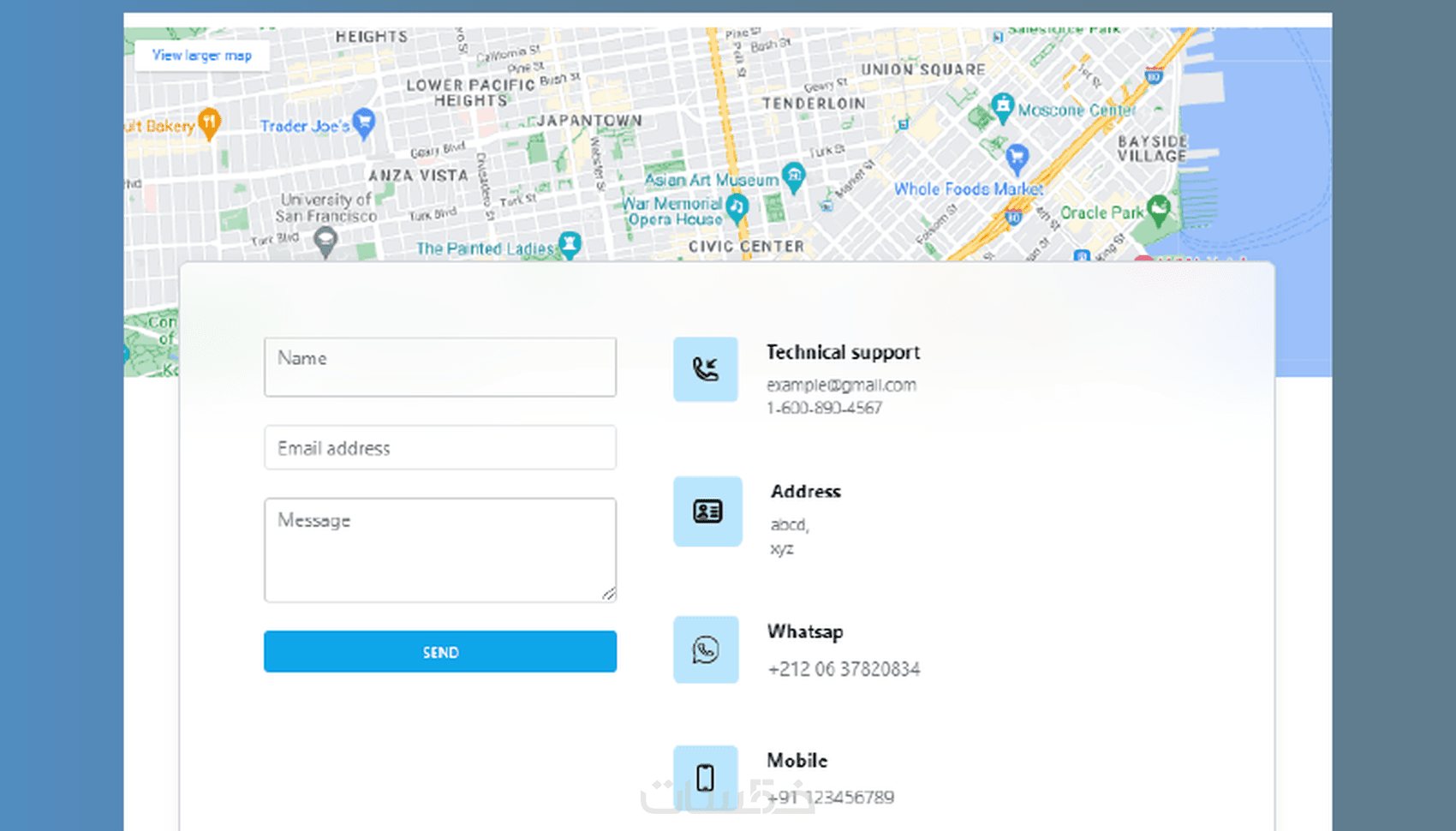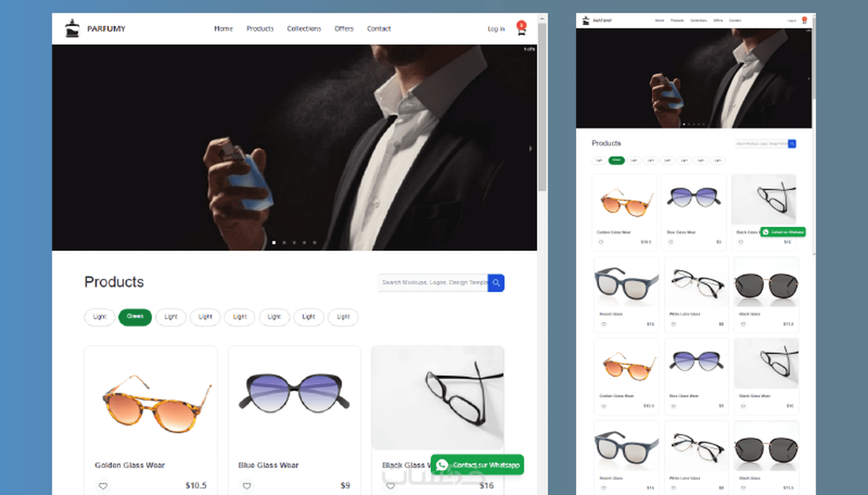 جزء فرونت إند الخاص بواجهة الموقع ويشمل :