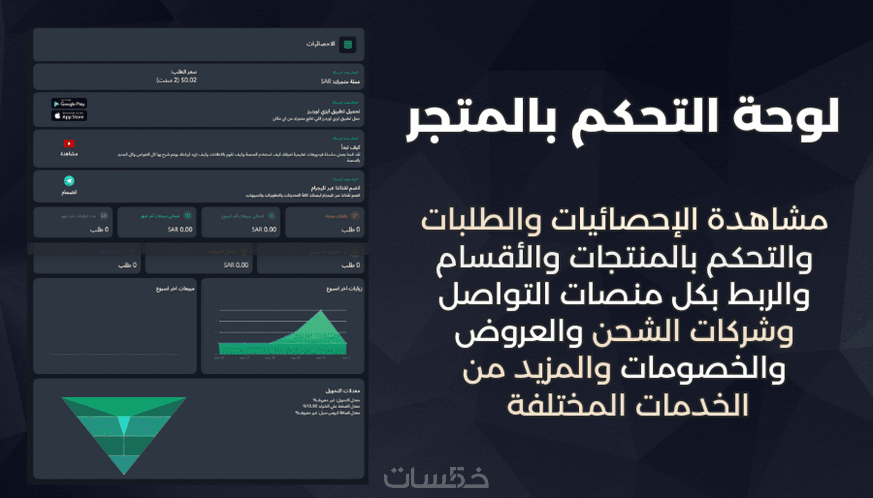 إحصائيات دقيقة عن المبيعات، عدد الطلبات، المخزون المتاح، زيارات المتجر عبر لوحة تحكم سهلة الاستخدام