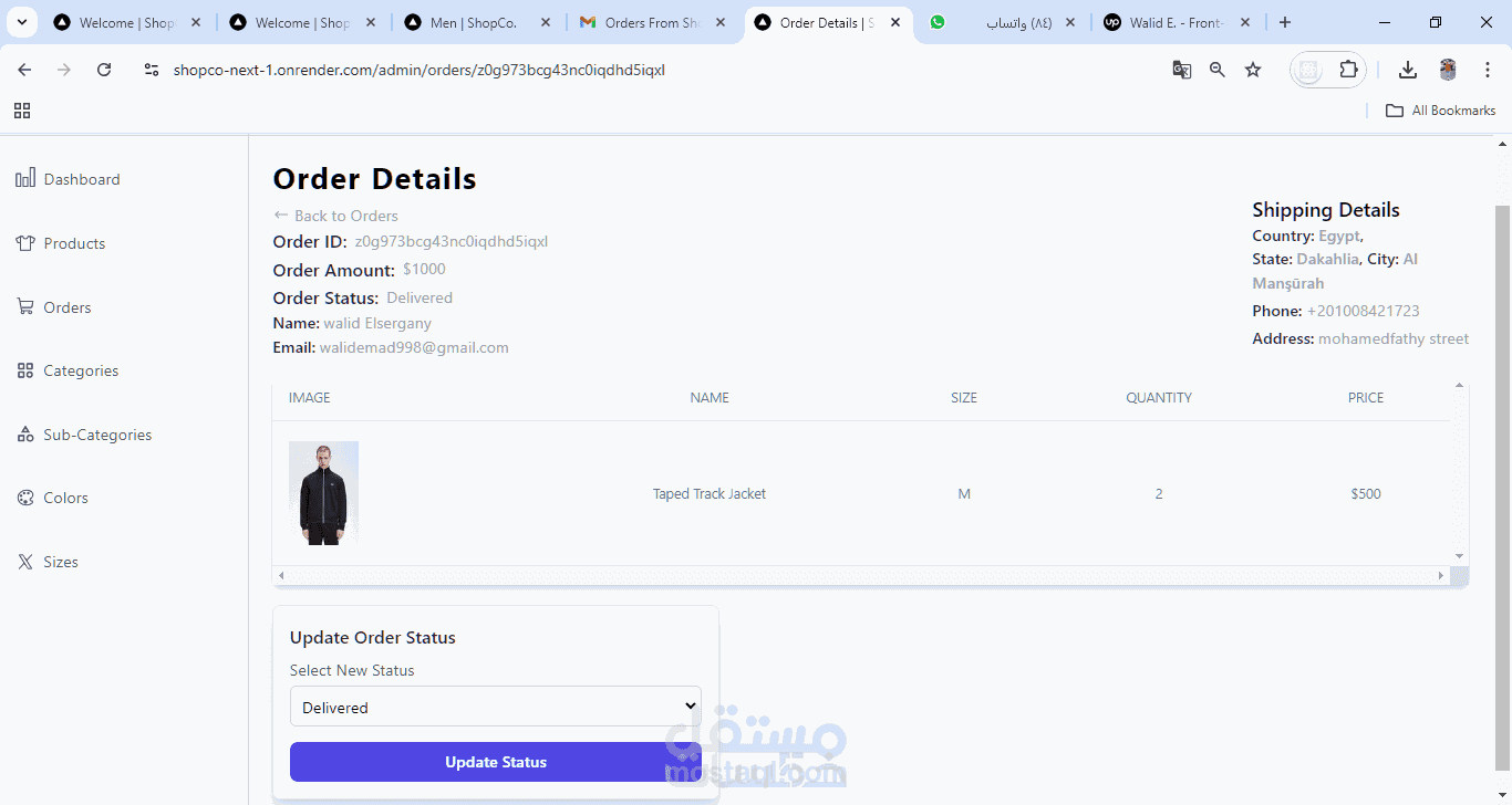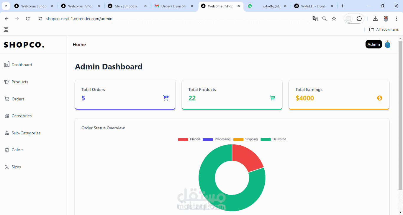 اضافة لوحة تحكم لادارة المنتجات و اضافتها و المستخدمين و ادارة الطلبات للمنتجات مقابل