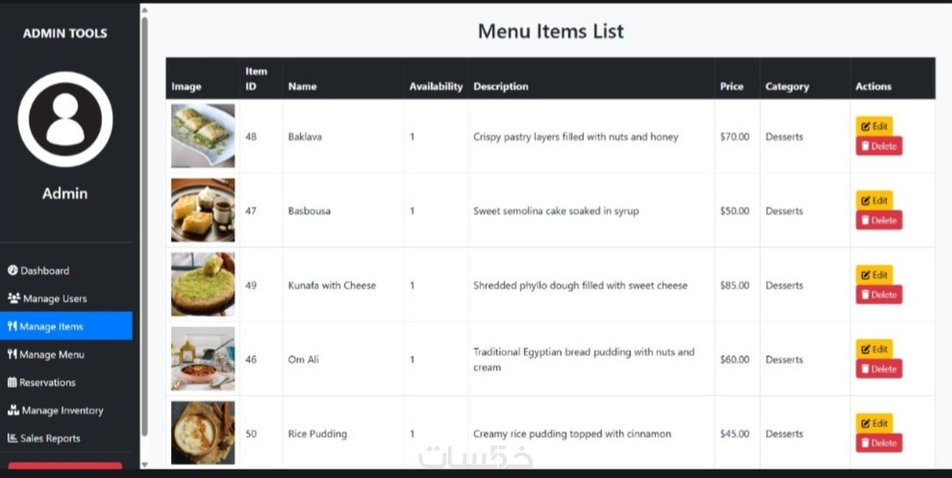 إضافة أو تعديل قائمة الطعام والمنتجات.