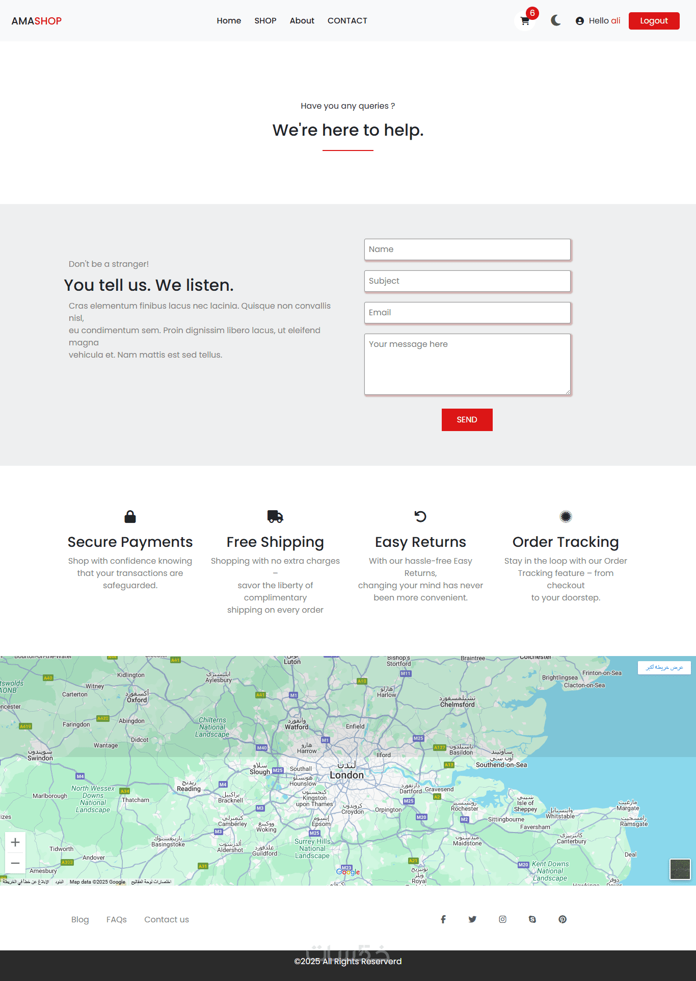 تصميم متجاوب باستخدام Bootstrap يضمن تجربة مستخدم ممتازة على الموبايل، التابلت، والكمبيوتر.