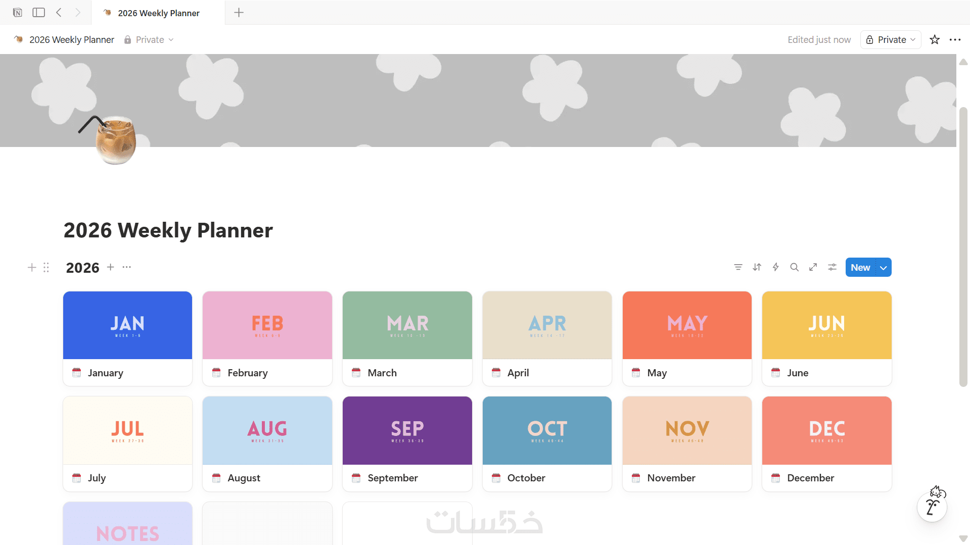 تحصل على قالب Notion جاهز من صفحة واحدة منسقة وسهلة الاستخدام، مثل متتبع عادات أو منظم أهداف، مع قواعد بيانات عملية تساعدك على التنظيم والمتابعة