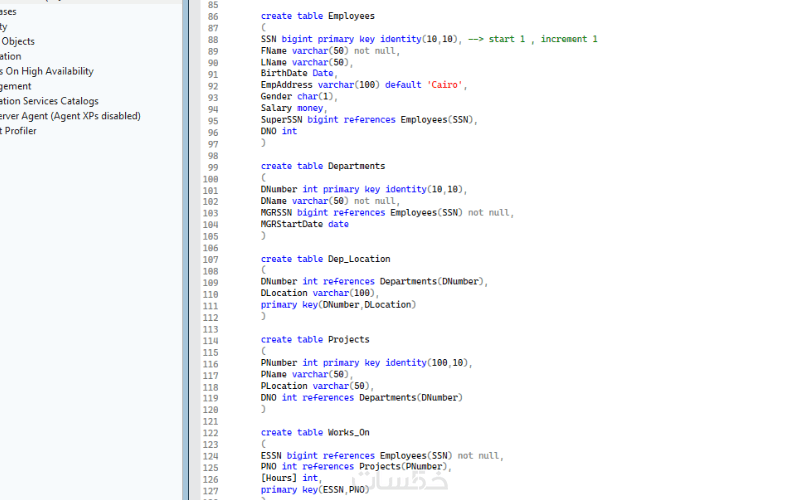 كتابة كود SQL كامل يشمل: