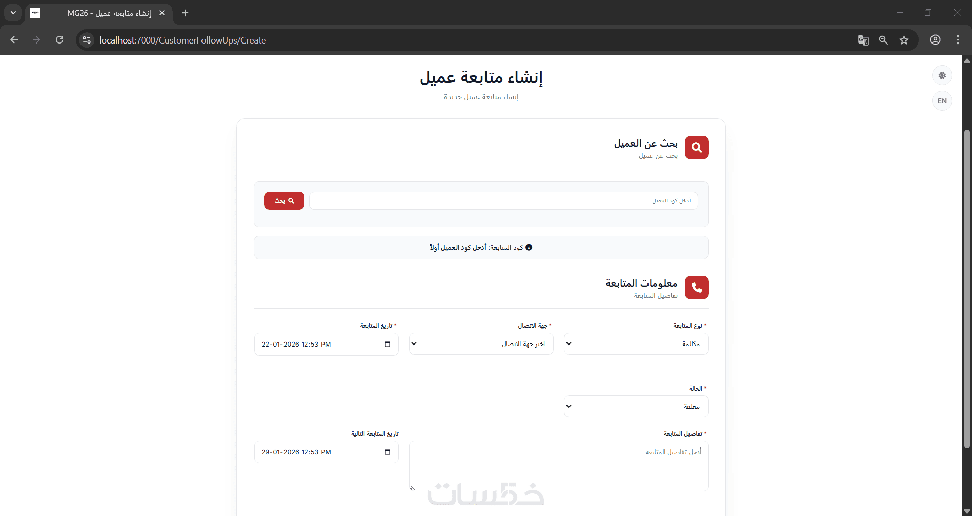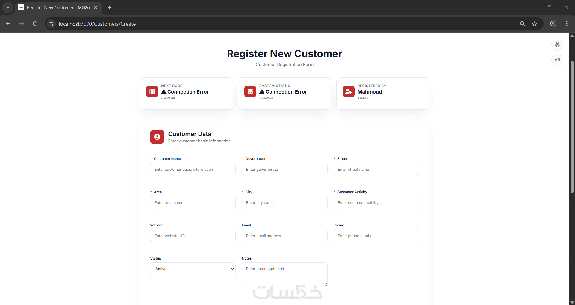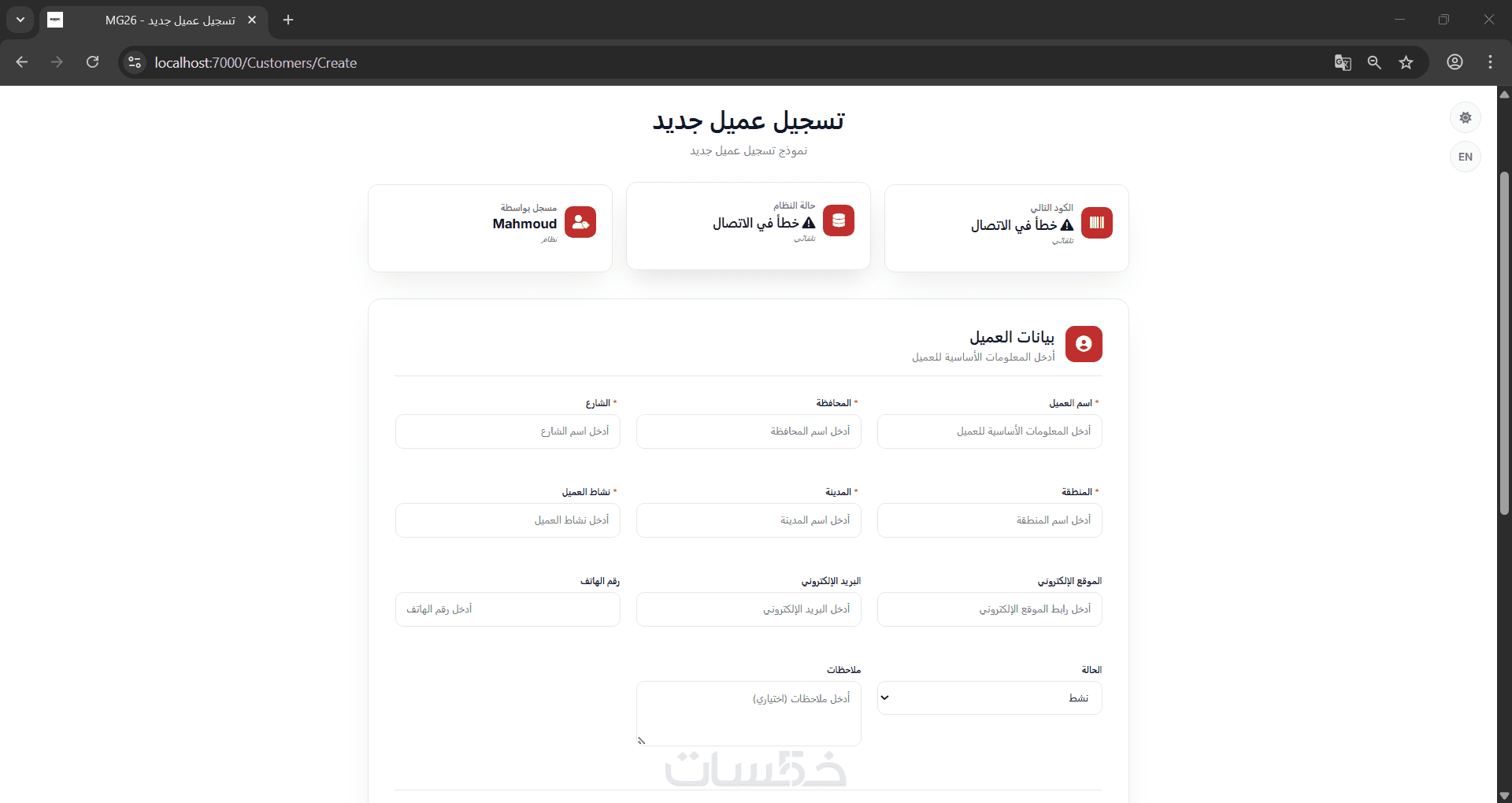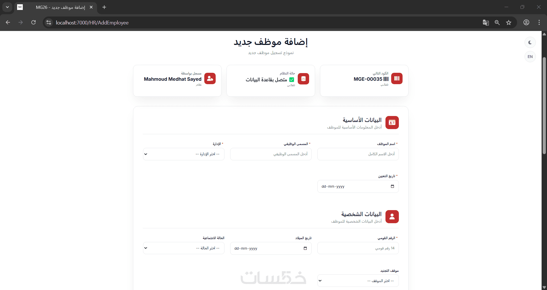 - صفحة إضافة بيانات