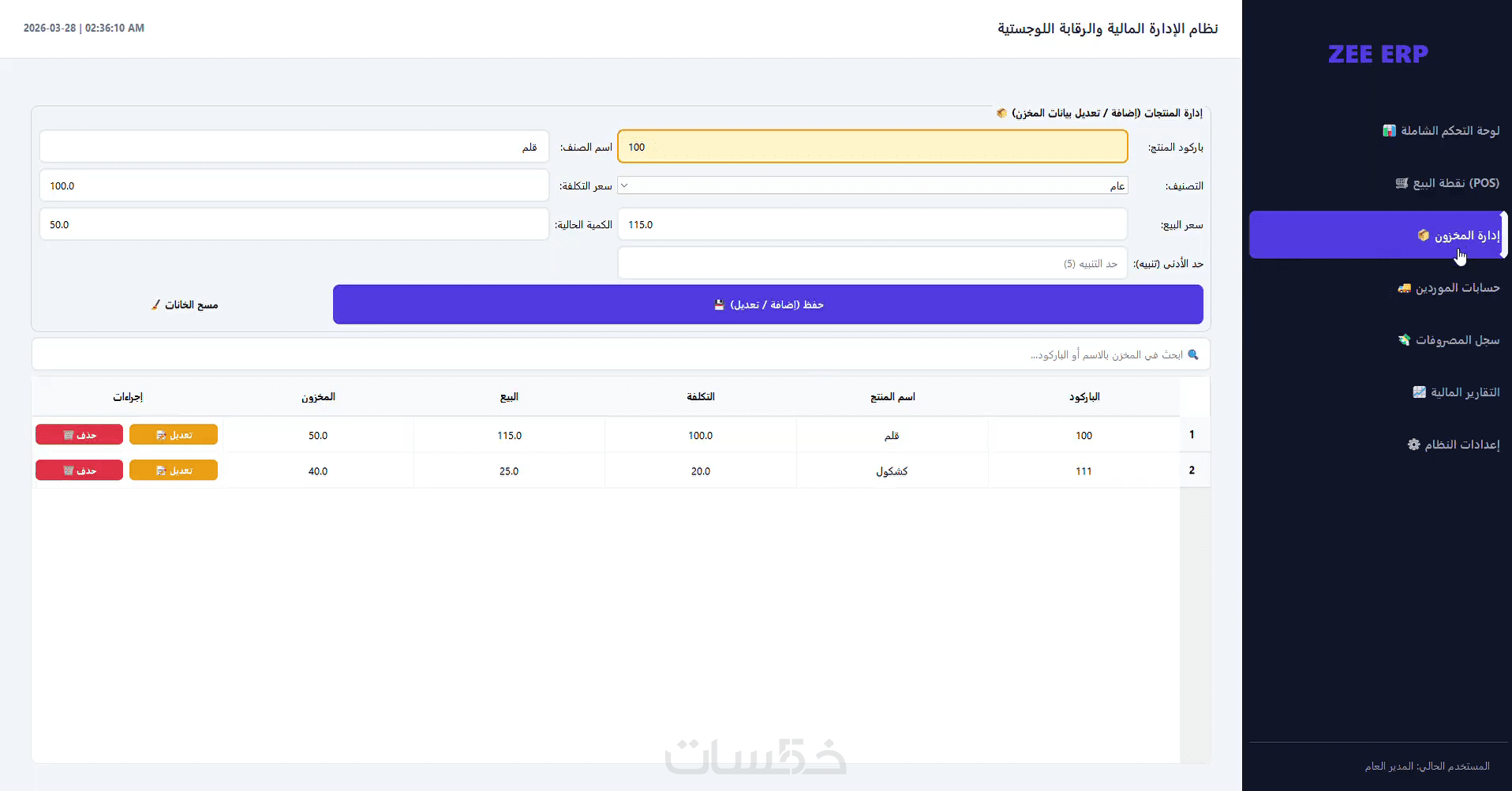 إدارة المنتجات والمخزون