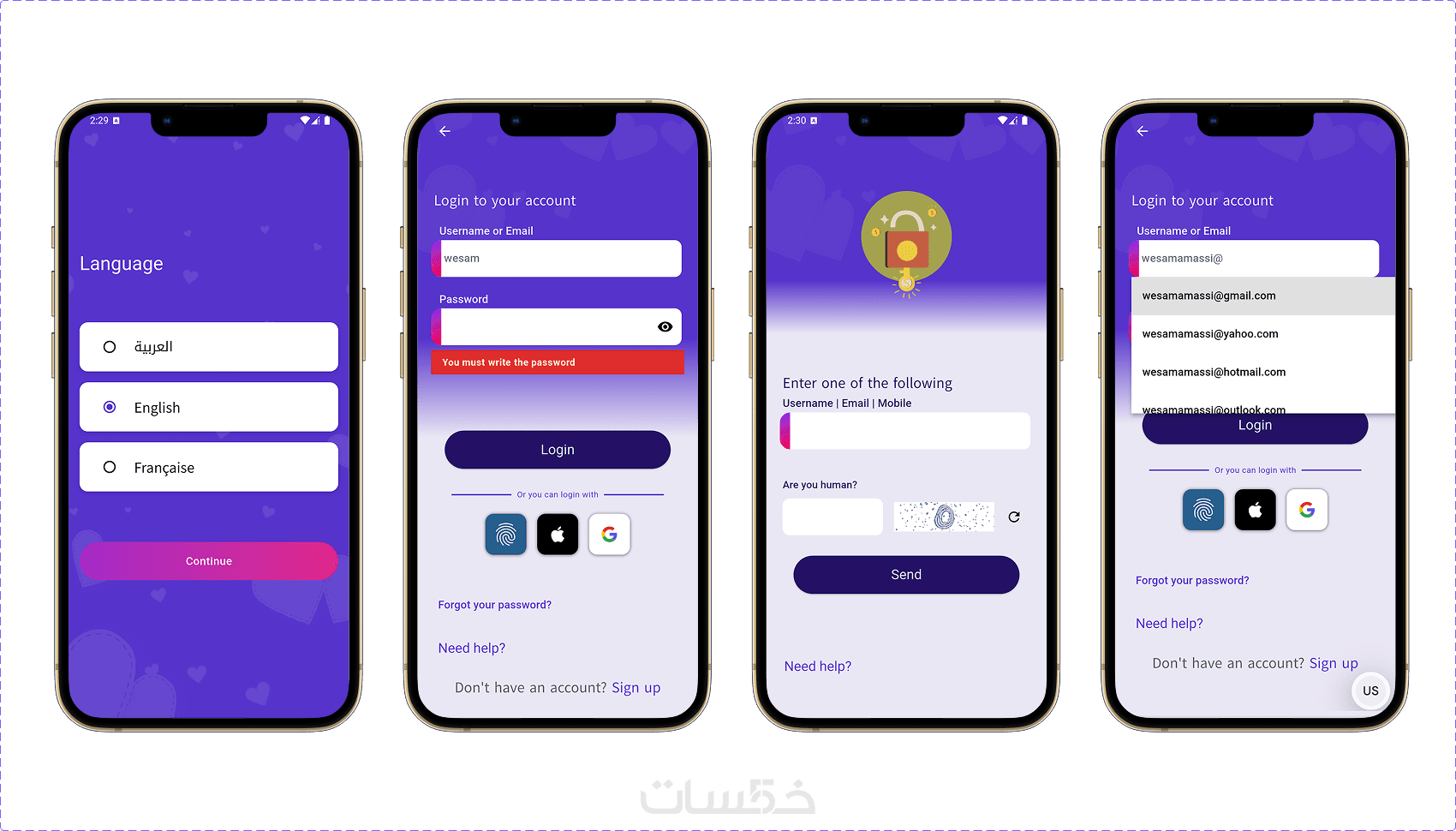 -واجهة تسجيل دخول (اسم المستخدم - كلمة المرور) .