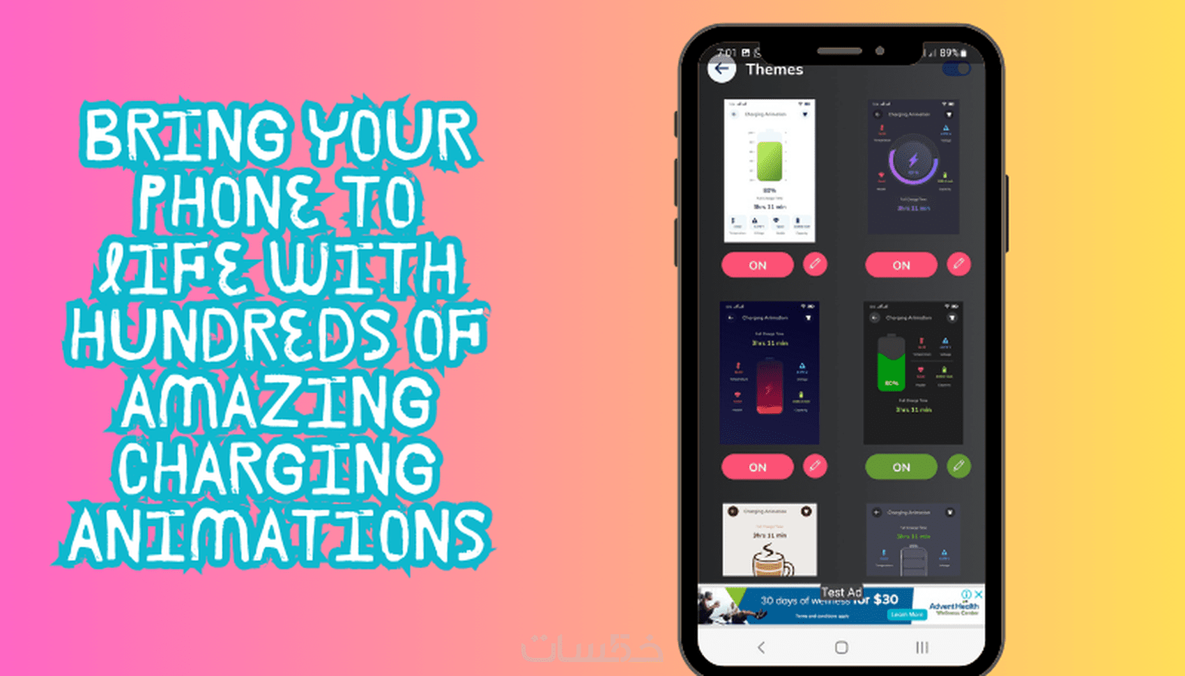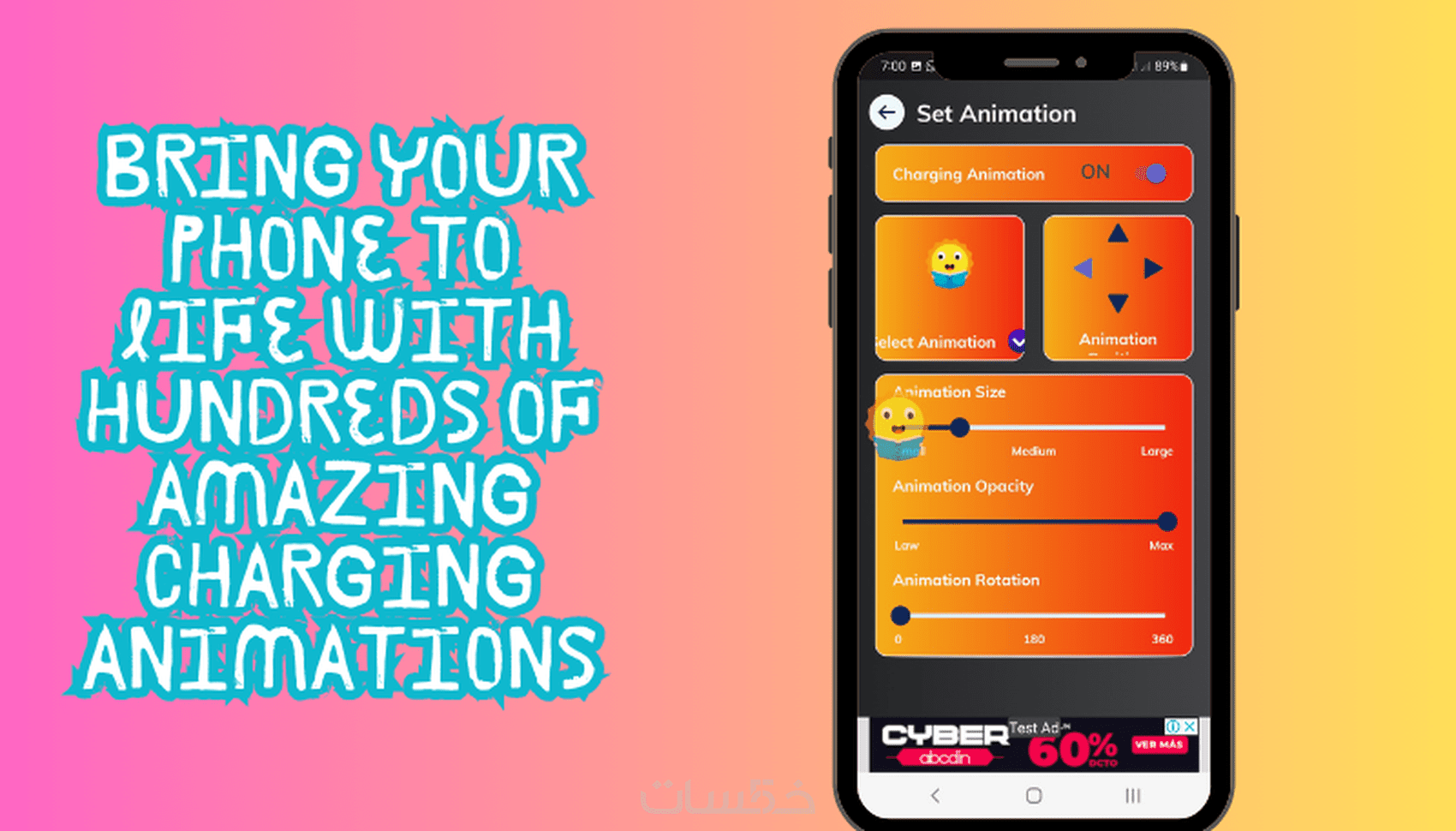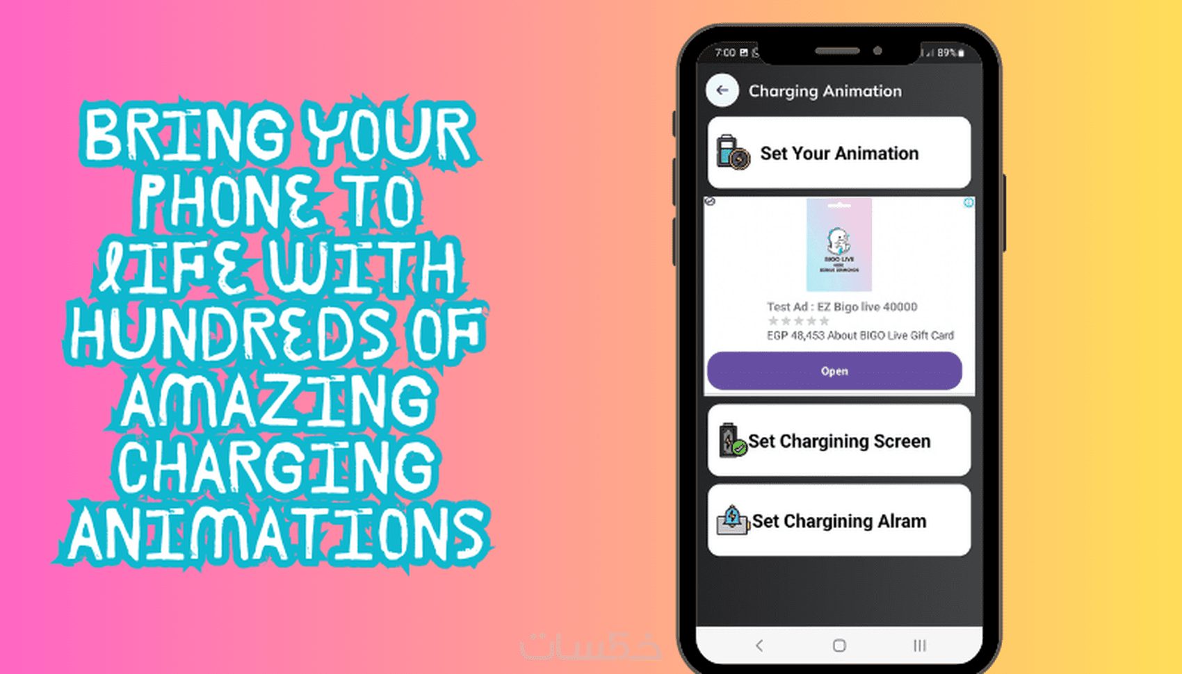 شاشة لتعيين الأنيميشن كشاشة شحن.
