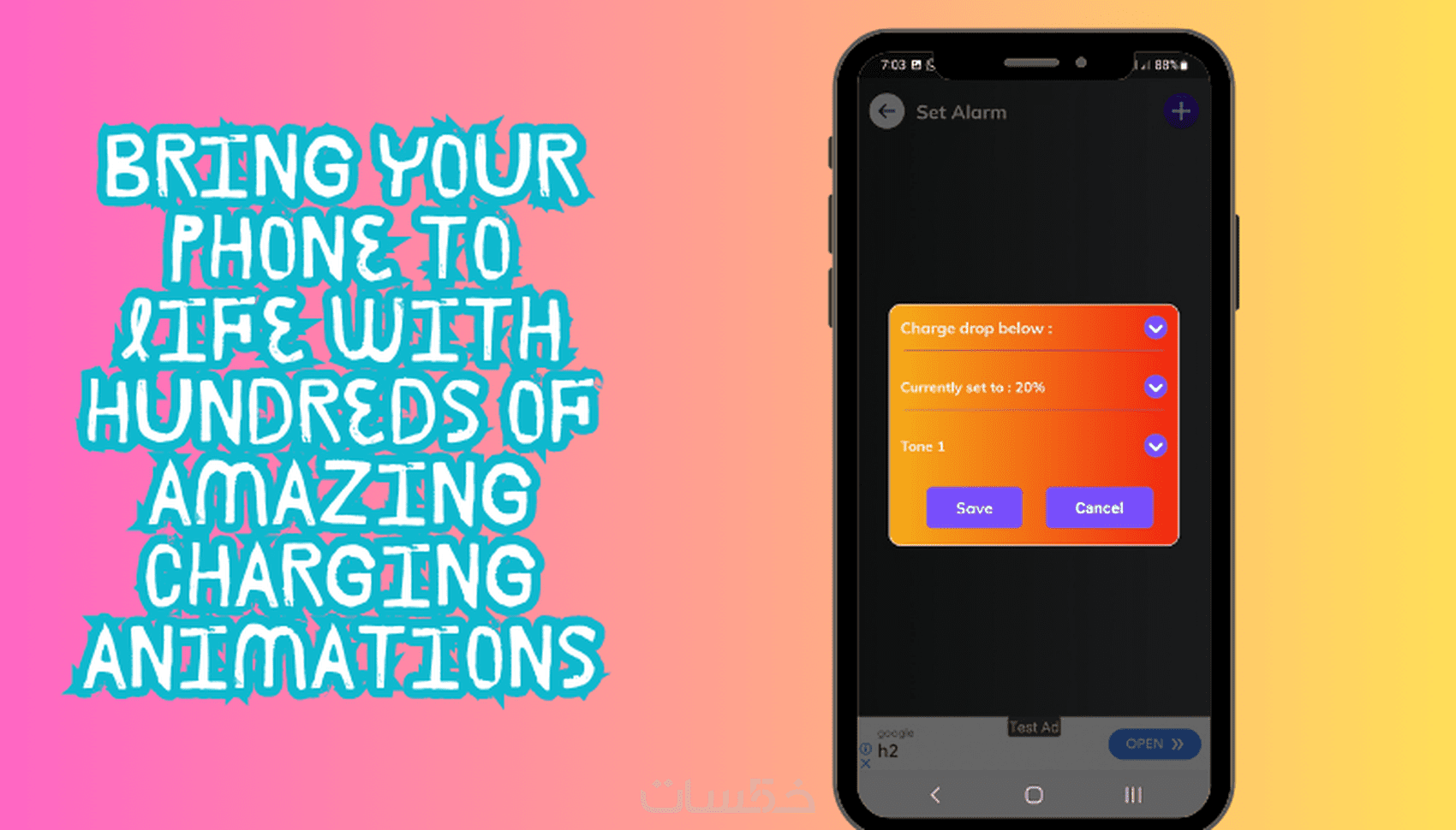 شاشة لضبط التنبيه فى حالة وصول نسبة الشحن لنسبة ما أو أقل من نسبة ما