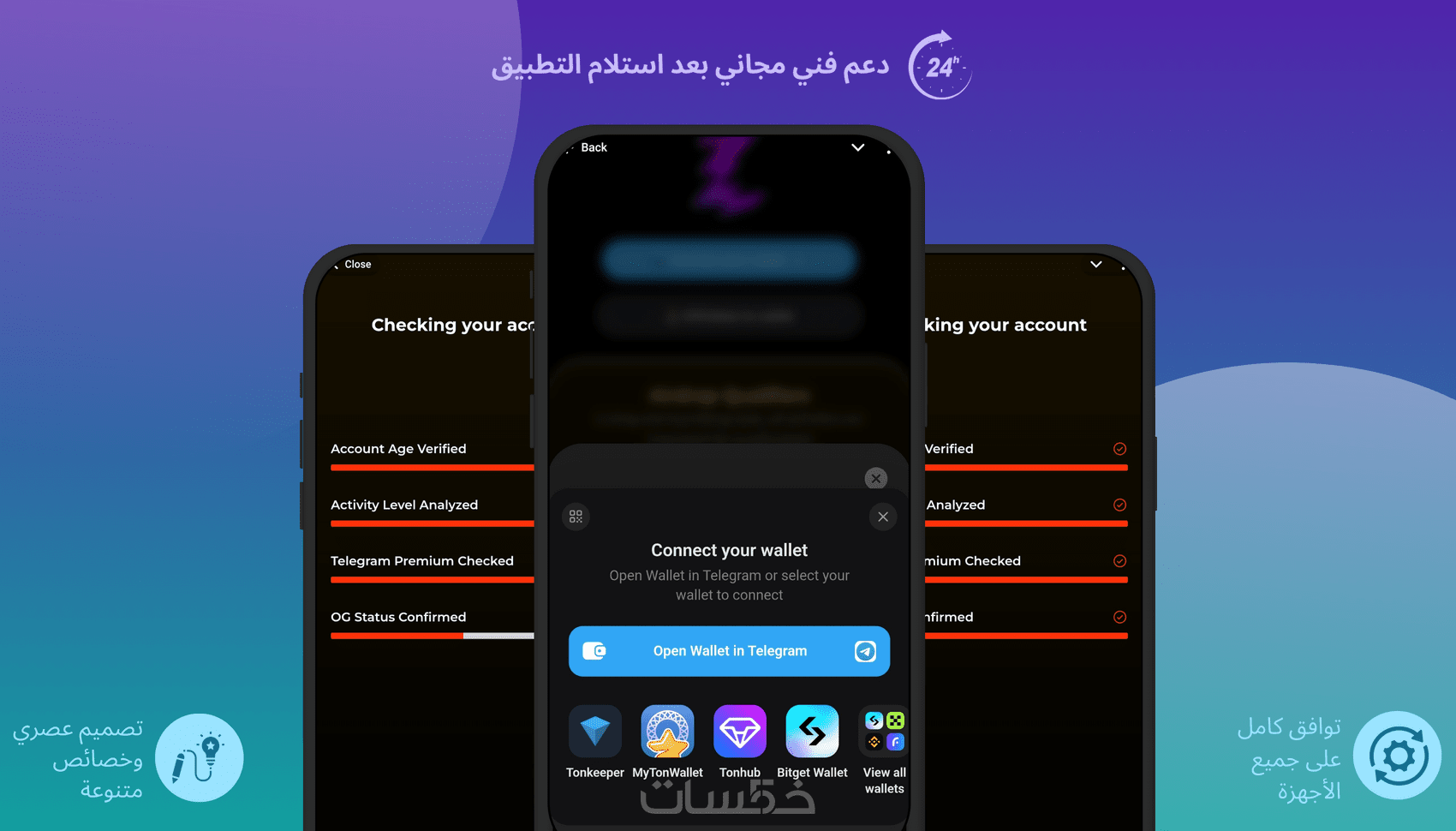 دمج خصائص التطبيق كاملة مع Telegram Api وربط المحفظة وجلب بيانات المستخدمين من تيليجرام.