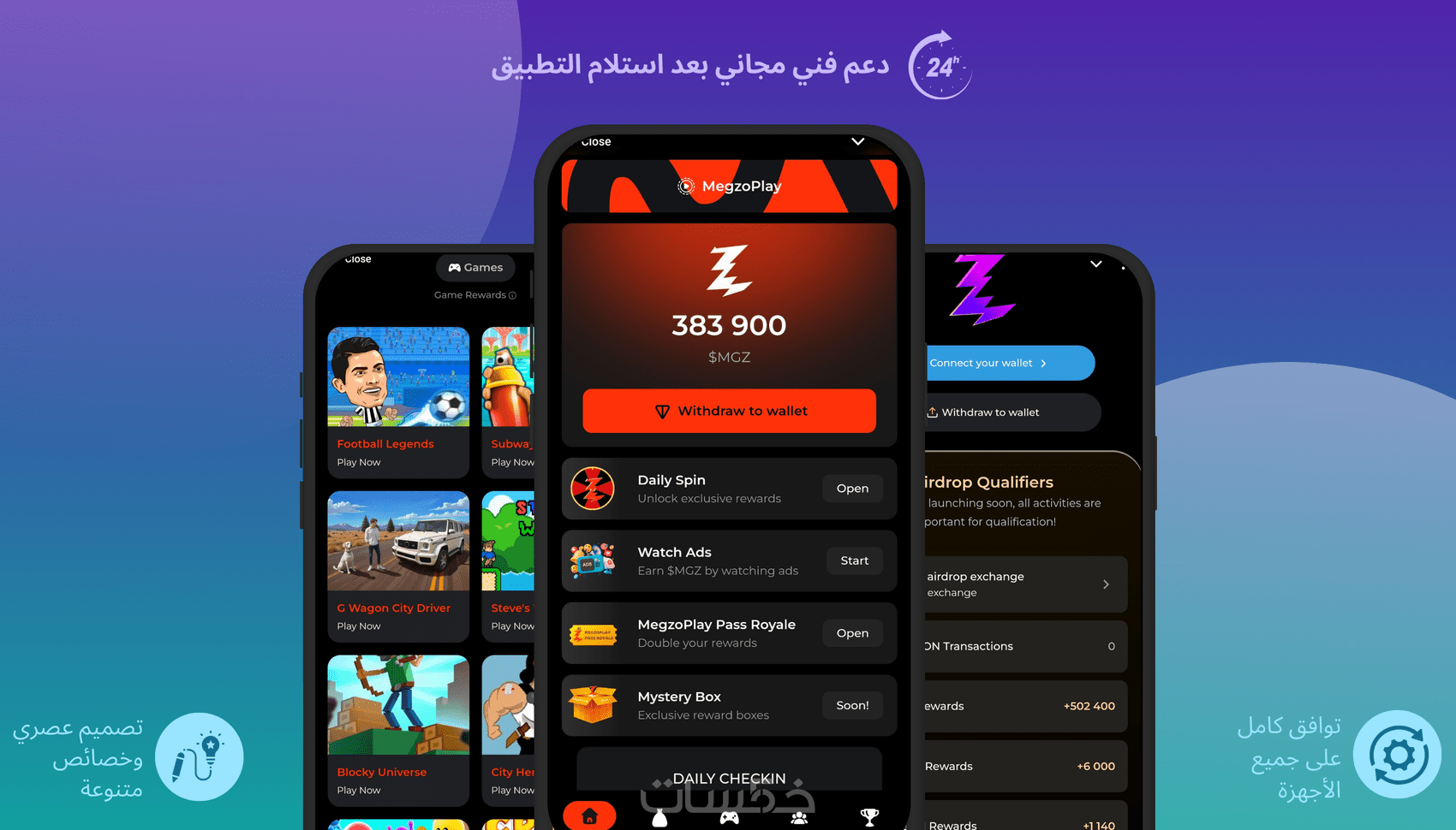 دمج المحافظ الرقمية (مثل MetaMask).